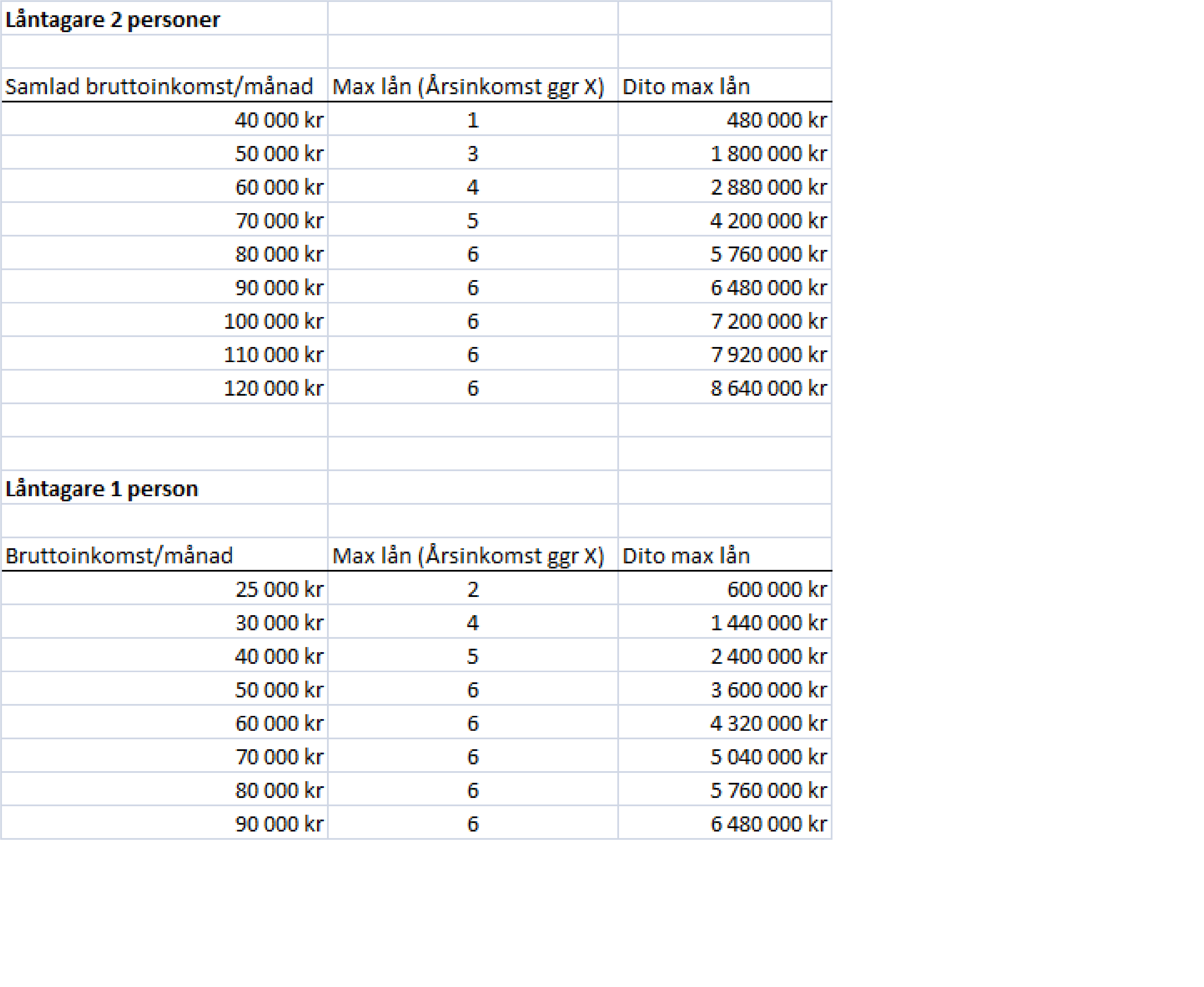 Maxtak är 6ggr årlig bruttolån.