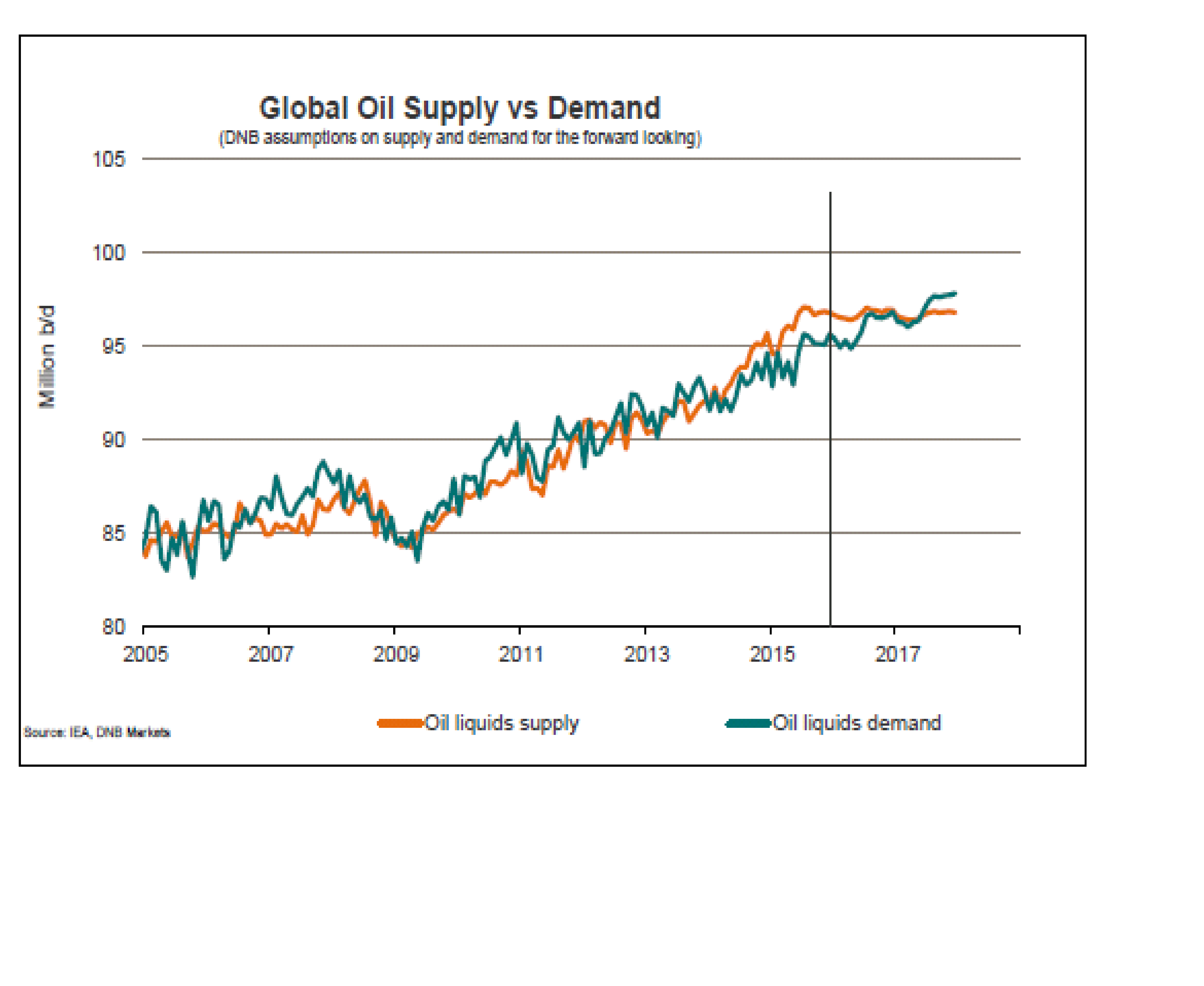 Läste en oljerapport från DnB. Kort och gott är de positiva till oljan sett på lite sikt.