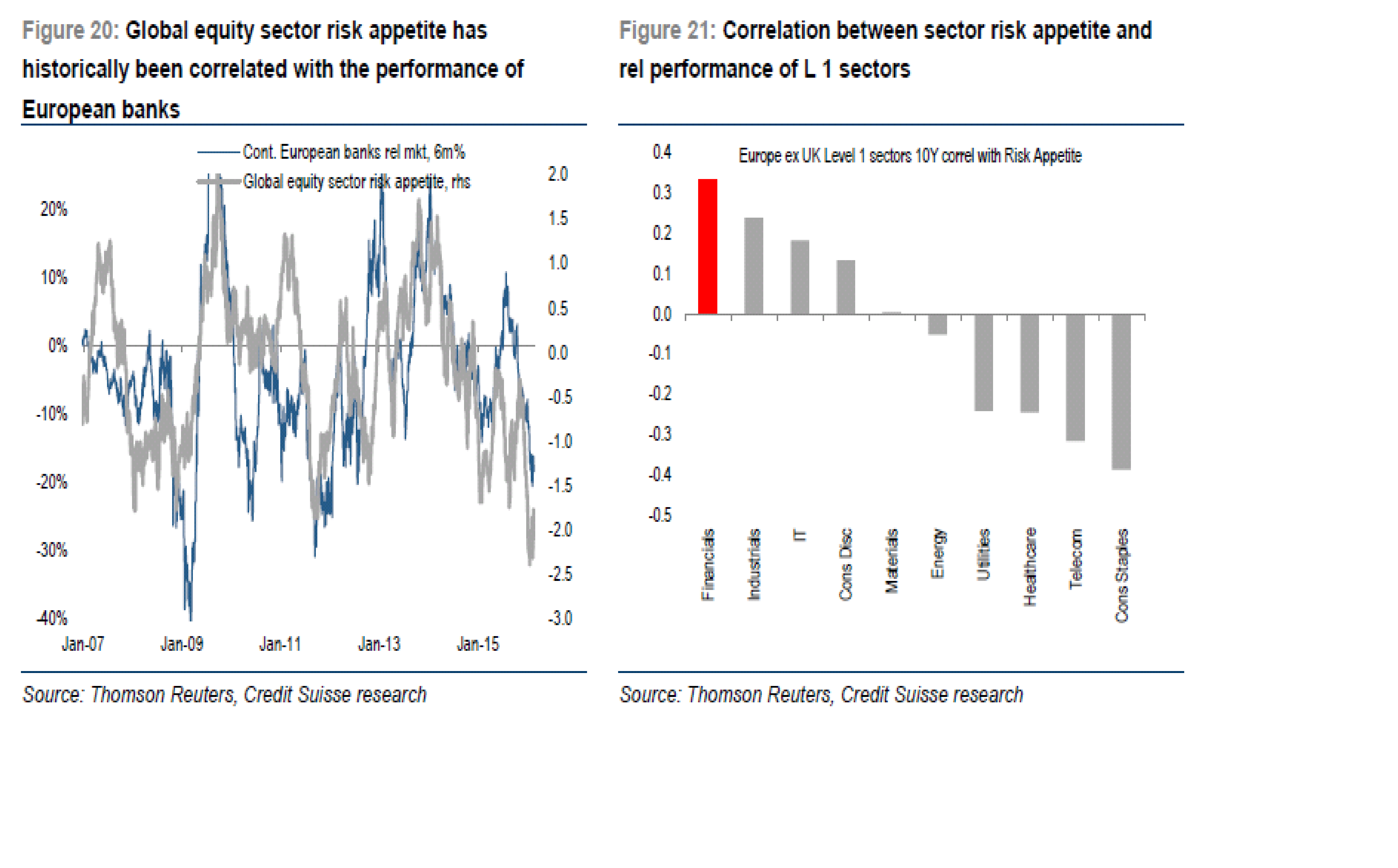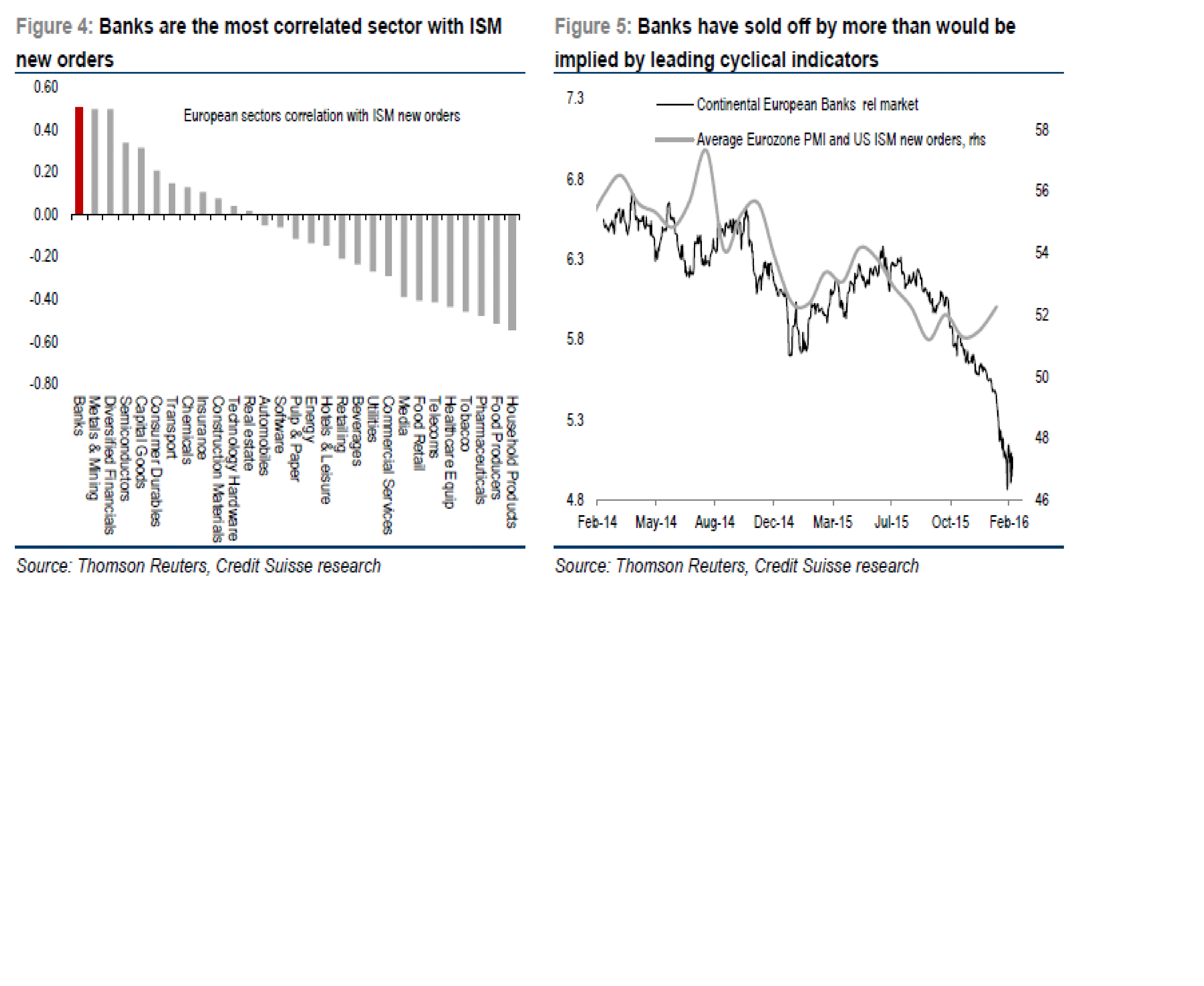 Euro banker är de som har bäst korrelation med ISM New Orders. Det kan man ju ha i baktanke när siffrorna kommer imorgon och på torsdag. Men på senare tid har banker gått betydligt sämre än vad ISM flaggar för. Det handlar såklart om olja-high yield defaults-Lehman2 rädslan