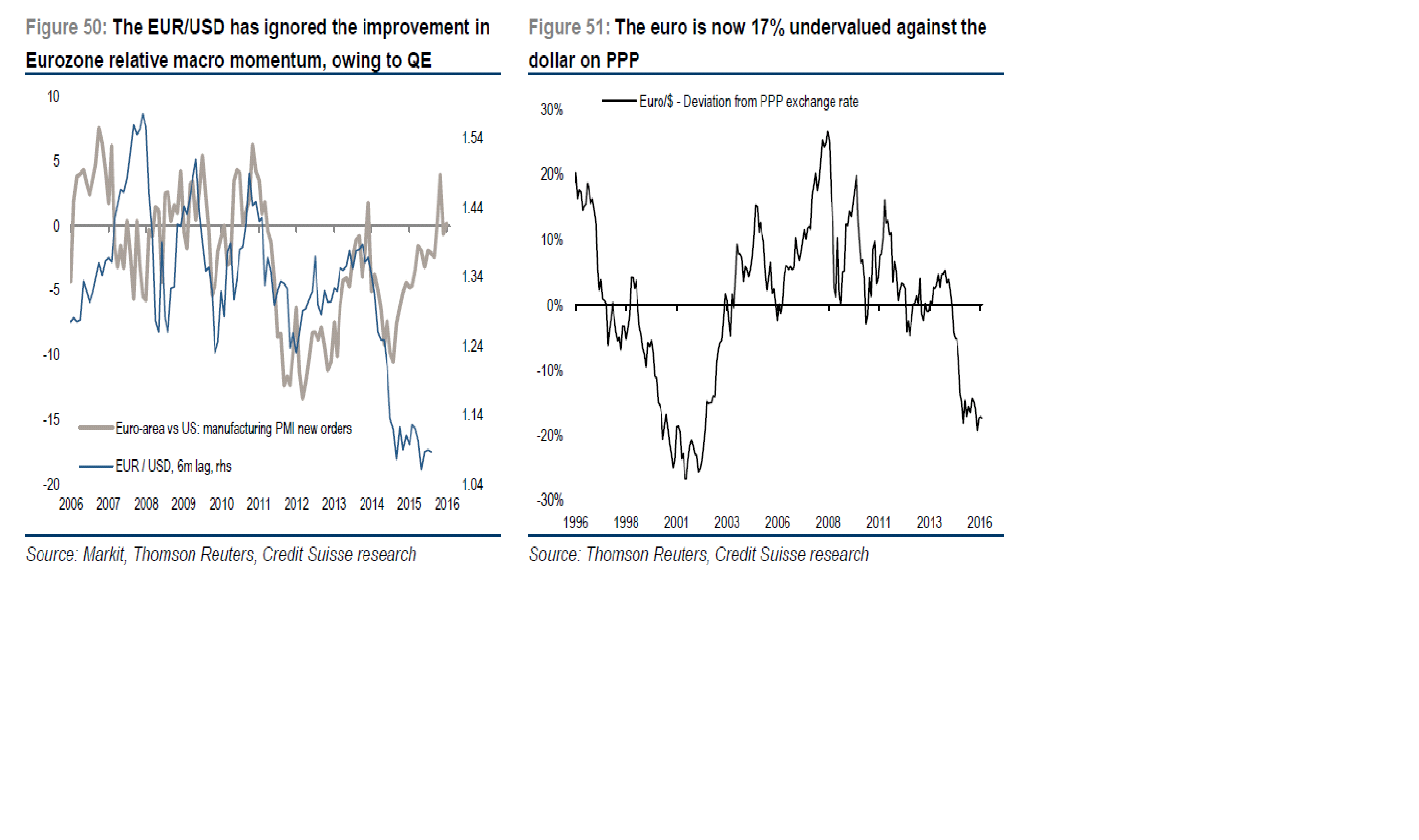 Titta på nedre vänstra chartet. Jag tror inte ni förstår hur intressant det är. Vad innebär detta? Jo att den  relativa inbromsningen i Usa borde gjort dollarn signifikant mycket svagare. Eller Euron väsentligt starkare. Varför har inte detta hänt? Två anledningar. För det första så lanserade Draghi ett rätt maffigt paket som hindrade Euron att stärkas. För det andra, så räknar marknaden kallt med att US Pmi ska studsa upp från dagens låga nivåer. Man tror detta eftersom oljan studsat, dollarstyrkan har klingat av och tjäntesektorn e fortsatt stark. Det är bra skäl. Jag tror också Pmi/Ism ska studsa.