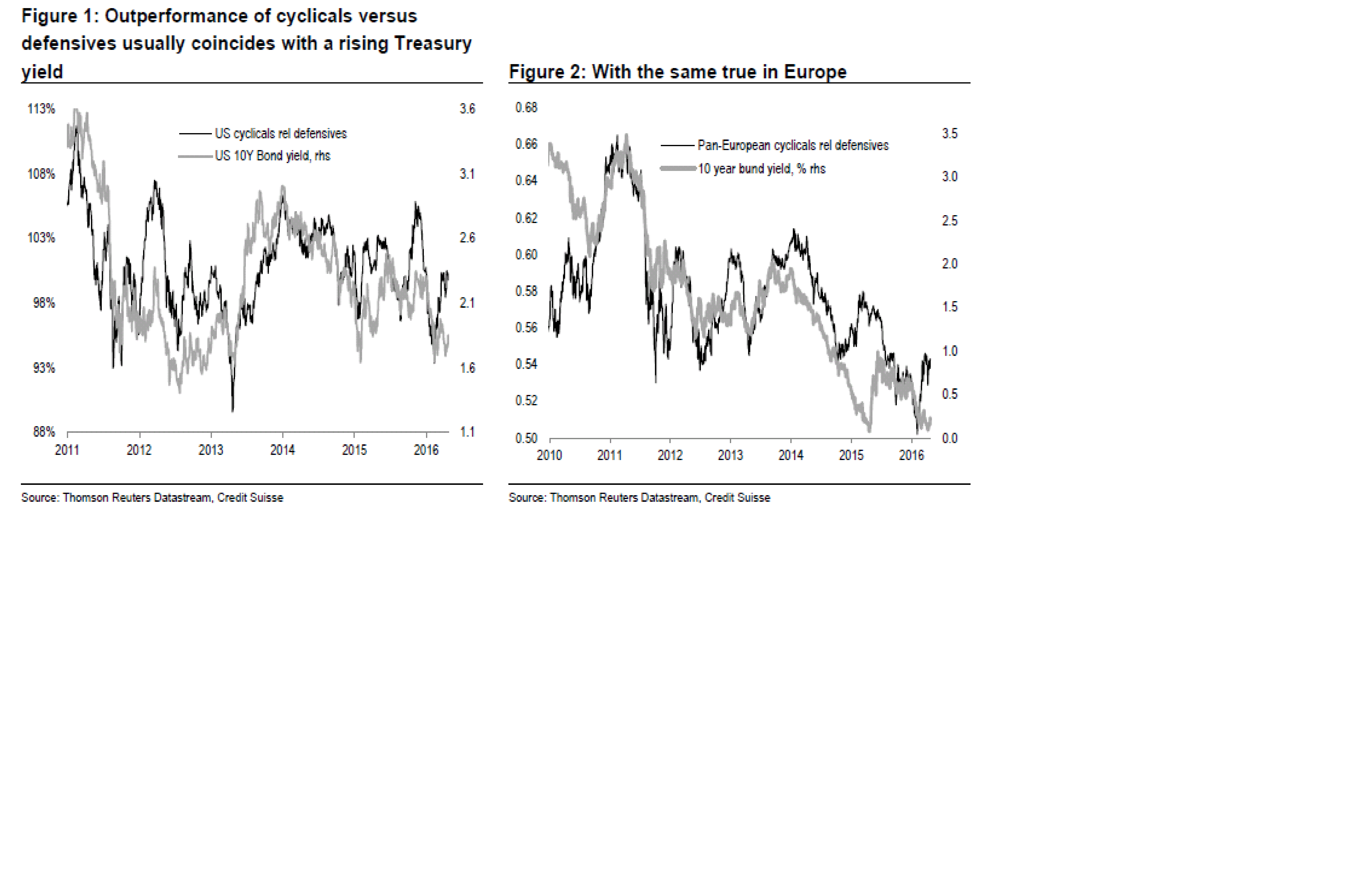 Det är intressant hur US cyclicals gått starkt såväl i USA som Europa. Men 10åringarna har i princip stått stilla. Vad betyder detta? Jo att aktiemarknaden har tagit till sig av makrodatan och blickat framåt medan räntemarknaden först och främst har lyssnat på FEDs duvighet. Men det är lite motstridigt. Cyclicals kräver en stigande ränta som kräver en hökig FED (och FED är hökiga när de är positiva till tillväxt). Samtidigt ger en hökig FED en stark dollar, som i sig har en bromsande effekt på Cyclicals. Man vill gärna förenkla, men här handlar det om en balans, och nyansskillnader.