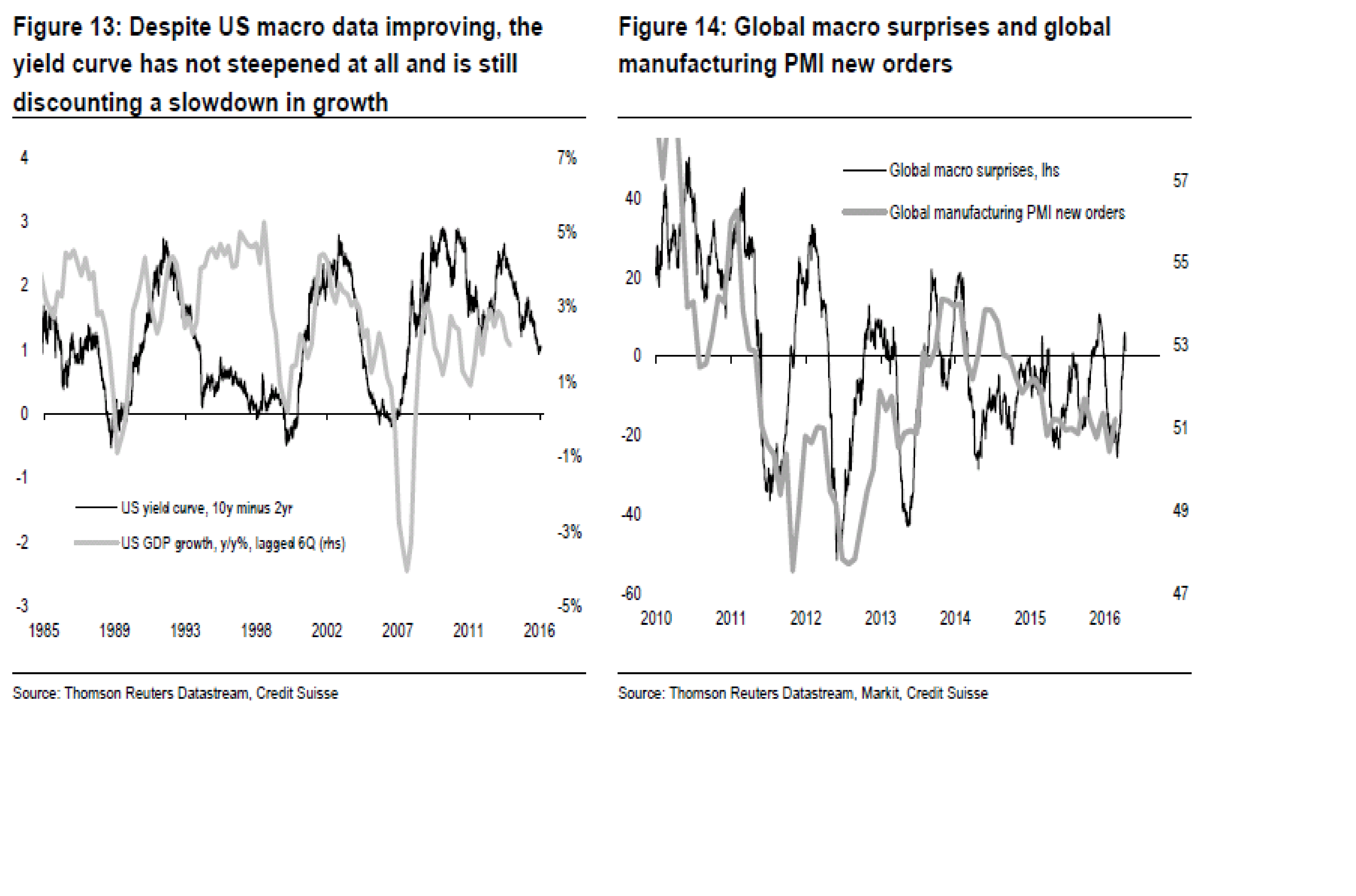 Yieldkurvan tittar jag på ofta, även om den inte är någon vidare ur tajming synpunkt. Den har fallit några år nu och pekar på tillväxt i USA kring 2%…. dvs ingen accelation what so ever. Samtidigt har senaste tidens surpriseindex pekat just på att PMI ska ta fart, och med den tillväxten…. således, drar PMI så borde till slut räntorna göra det! Annars måste PMI falla tillbaka!!!!
