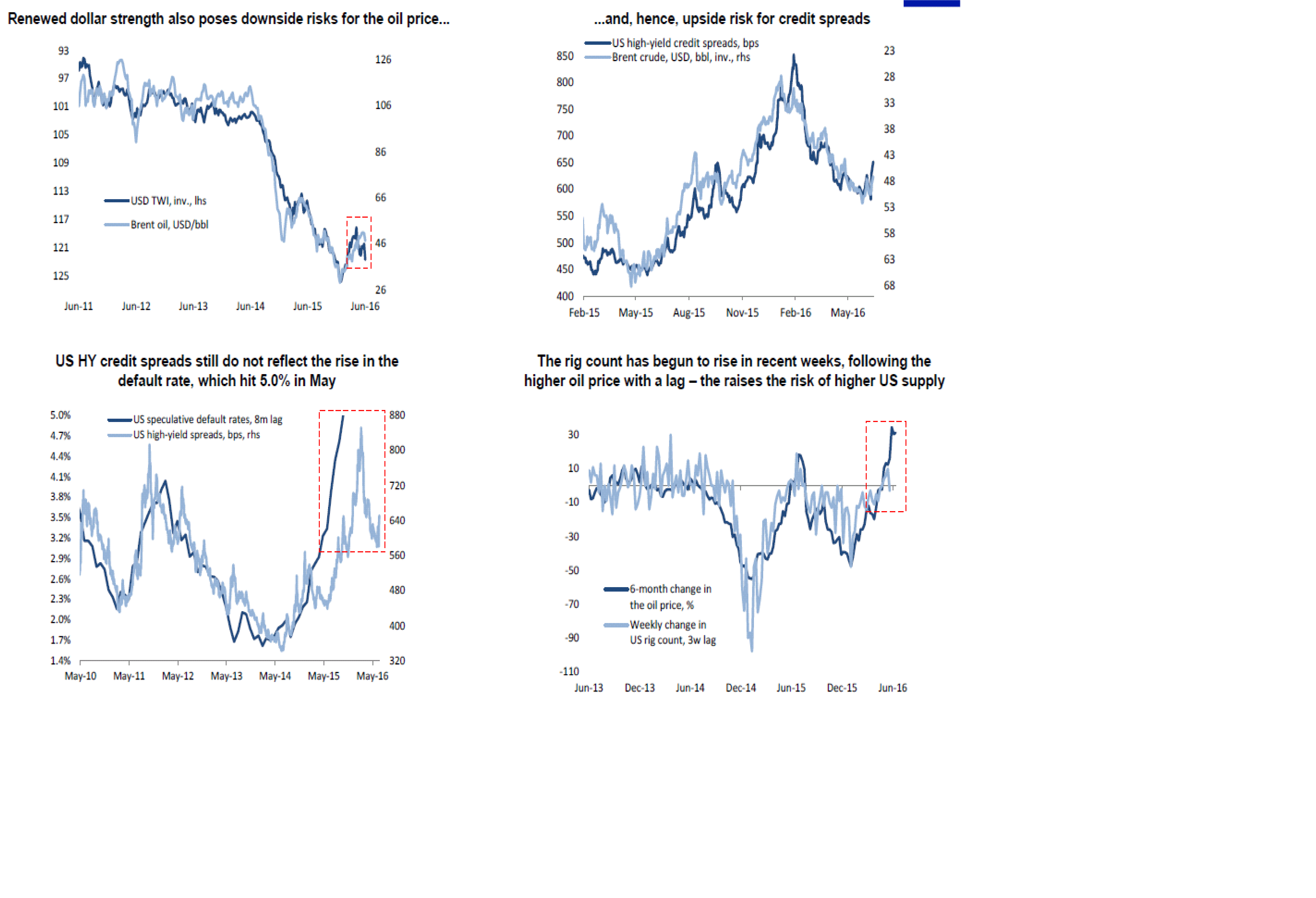 Några ord om oljan. Den är osedvanligt stark med tanke på dollarn. Det betyder att den prisar in fortsatt god efterfrågan. dvs Brexit väntas inte ha någon inverkan på den globala konjunkturen…. eller är oljan lagging? En stark dollar brukar tids nog få genomslag i oljan. Ett fall i oljan innebär att kreditspreadarna ökar igen…. och då kanske man börjar oroa sig över USA som man gjorde i våras,,,, usch och fy.