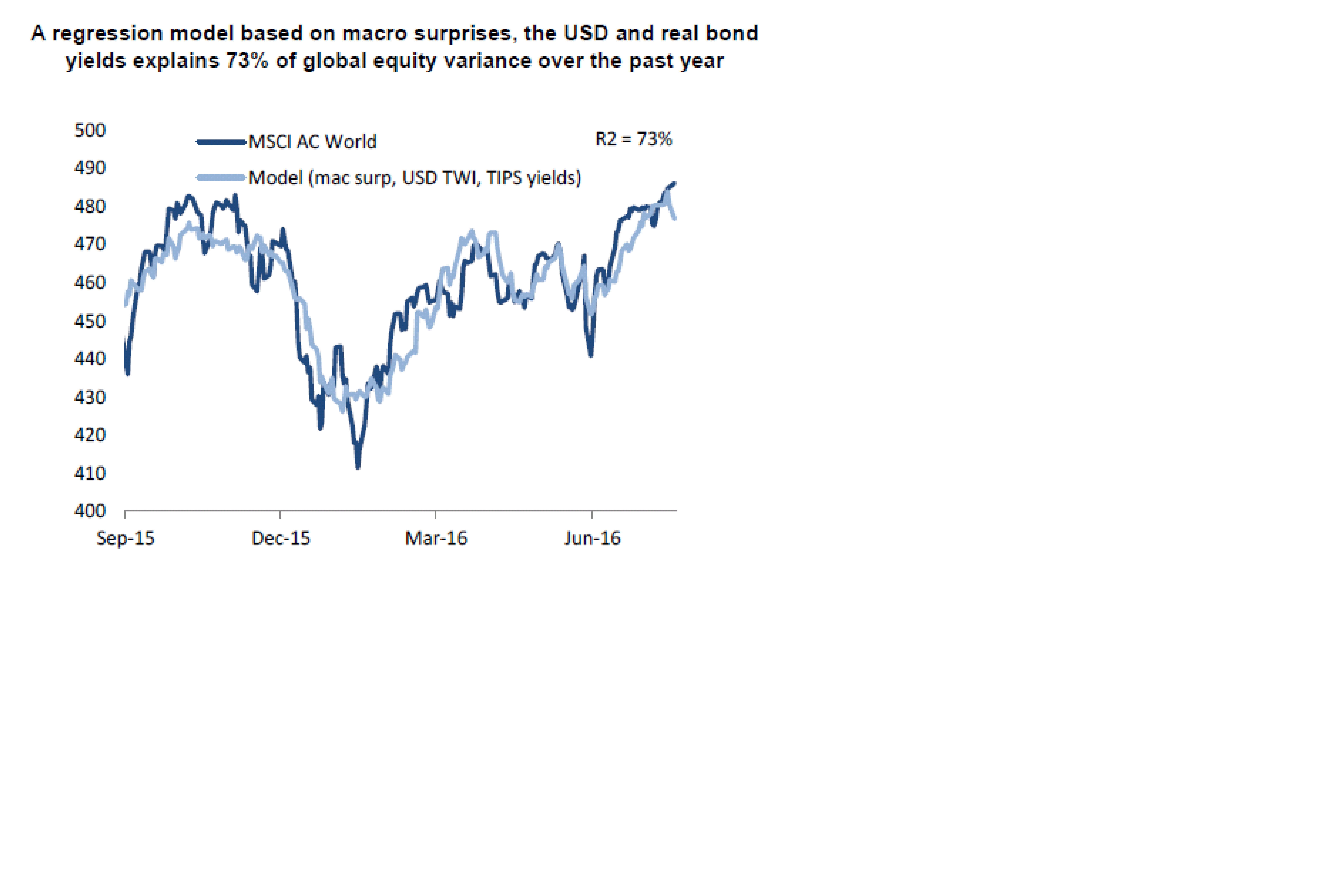 rätt intressant hur räntor, dollar och makrosurprises förklarar den globala aktieutvecklingen senaste året. Räntor och dollar beror på vad FED säger, och vad FED säger beror på hur makrodatan trillar in. Makro är viktigt! MEn kom ihåg att PMIs är ledande makro, dvs om du tror på en bra höst, så är det vad redan bra makrodata visat. Den datan som trillar in nu, är hur ekonomin ska bli till vintern….