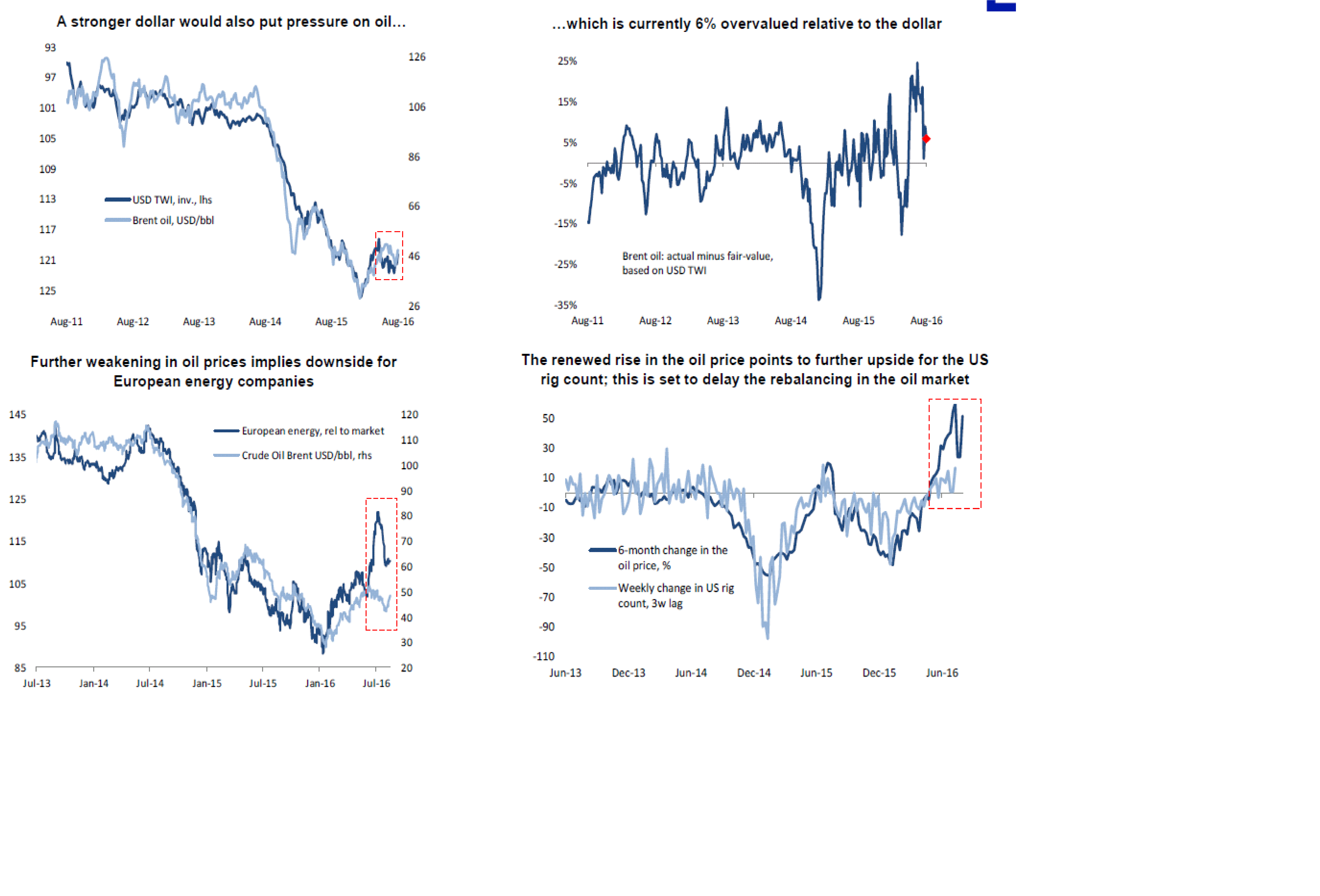 Jag noterar att räntemarknaden verkar ta det med ro. Så länge som 2 åringen ligger mellan 0,65-0,78% så är det bara brus. Börjar marknaden verkligen tro på räntehöjningar så bryter vi upp i ett nafs. Blir det Risk OFF igen så bryter vi ner. Det som är lite speciellt är dollar försvagningen sista veckan. Den har hjälpt oljan de sista 3 dollar från 47 till 50. Men varför är den så svag. Det är ju inte så att räntorna drar. Nej det kanske ändå handlar om att man säljer säkra dollar tillgångar och köper Risk i annan valuta? Eller tror man på en stökig höst med Trump eller att makro surprises i USA ska dyka ner igen? Men om det är det sistnämna så borde räntorna falla…. men de kanske bara är sent på det? Det kanske kommer?