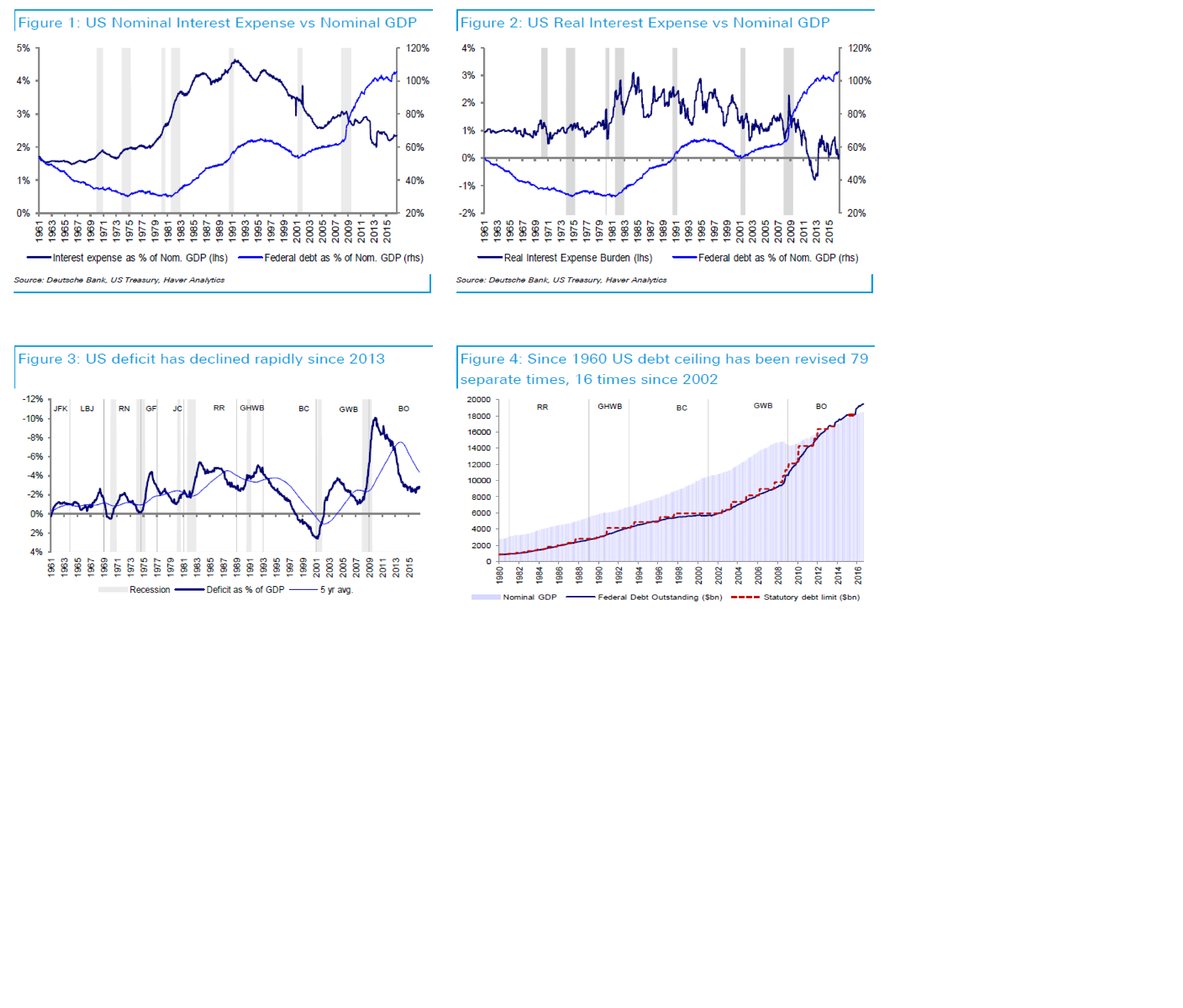 Nedan chart ger lite input om USAs statsskuld, räntan de betalar på den, budgetunderskott etc.