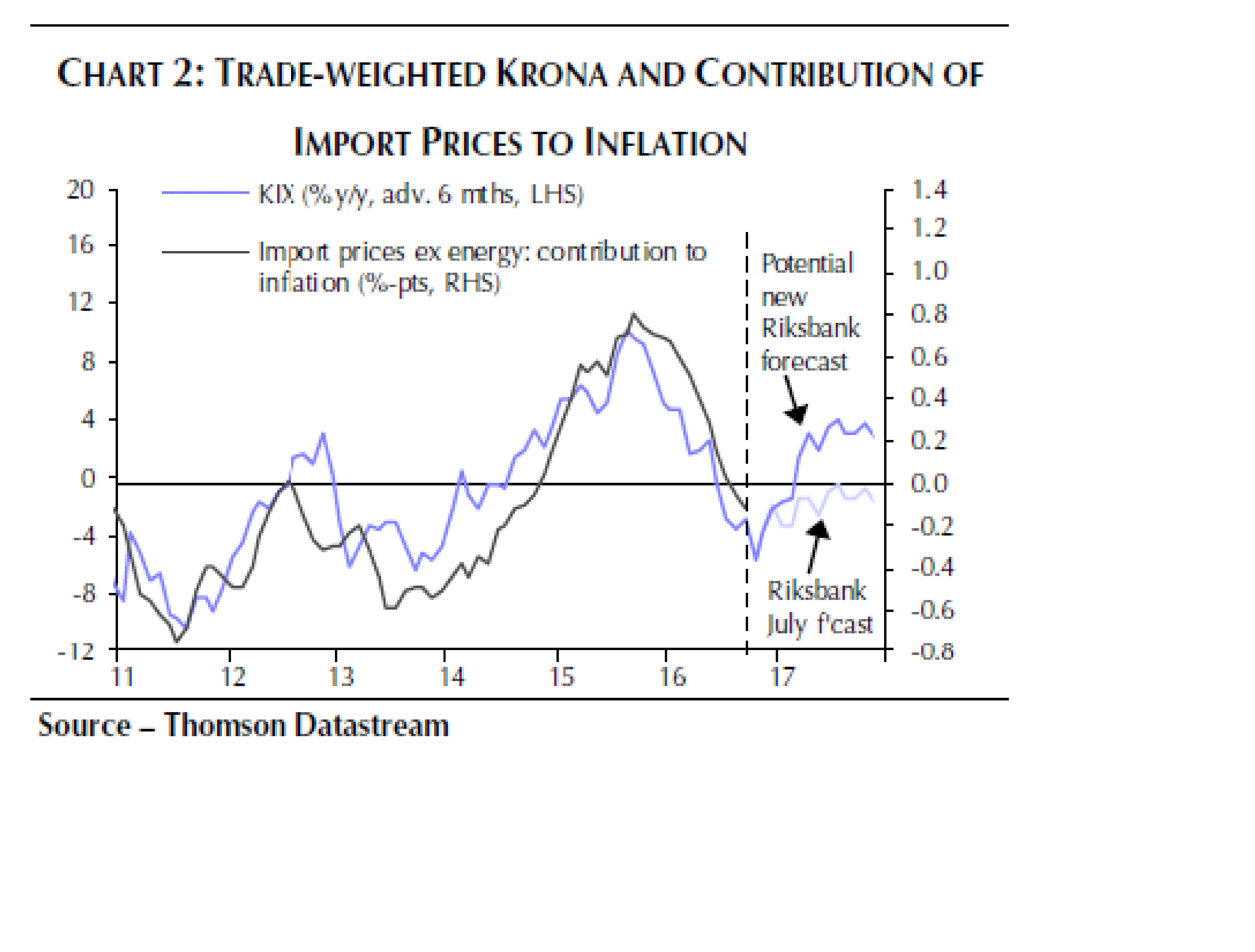 Kronan är som sagt viktig. När dollarn stärktes importerade vi inflation. Sedan slutet på 2015 har vi i spåren av kronans styrka importerat deflation… men den senaste kronförsvagningen kommer att innebära att vi framöver importerar inflation igen….. Så den senaste svaga inflationssiffran ska man ta med en nypa salt. Höjer dessutom FED i december, så lär den försvagas ännu mer!