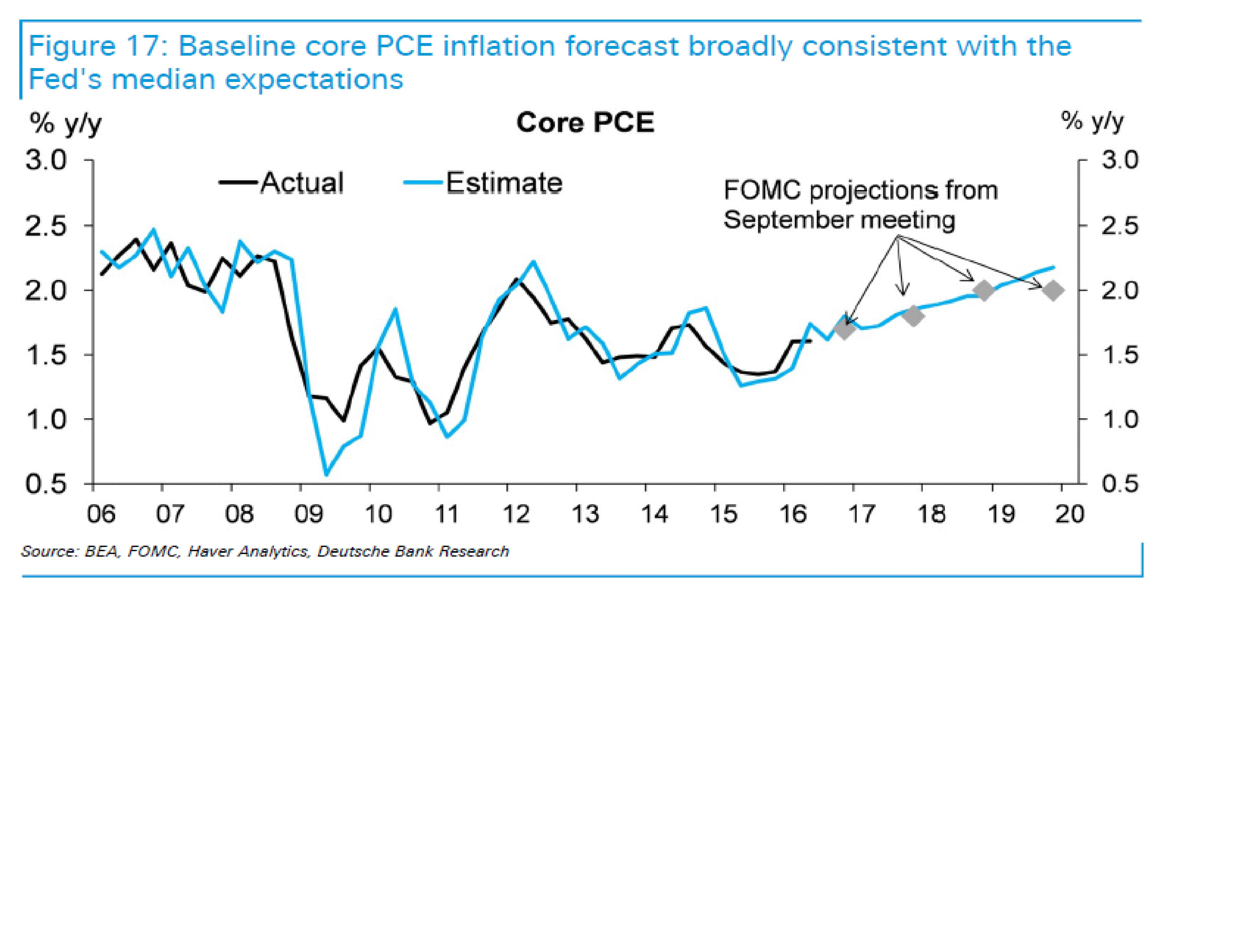 lite beroende på vad som händer så får det avtryck i inflationen…. FED och Deutsche tror att Core PCE letar sig uthålligt upp mot 2% i slutet av 2019… det skulle betyda att de har drygt 2 år på sig att höja till 1,5-2%…. 5 till 7 höjningar. Trots allt ska man ta de här prognoserna med en nypa salt! Mycket kan hända fram tills dess!