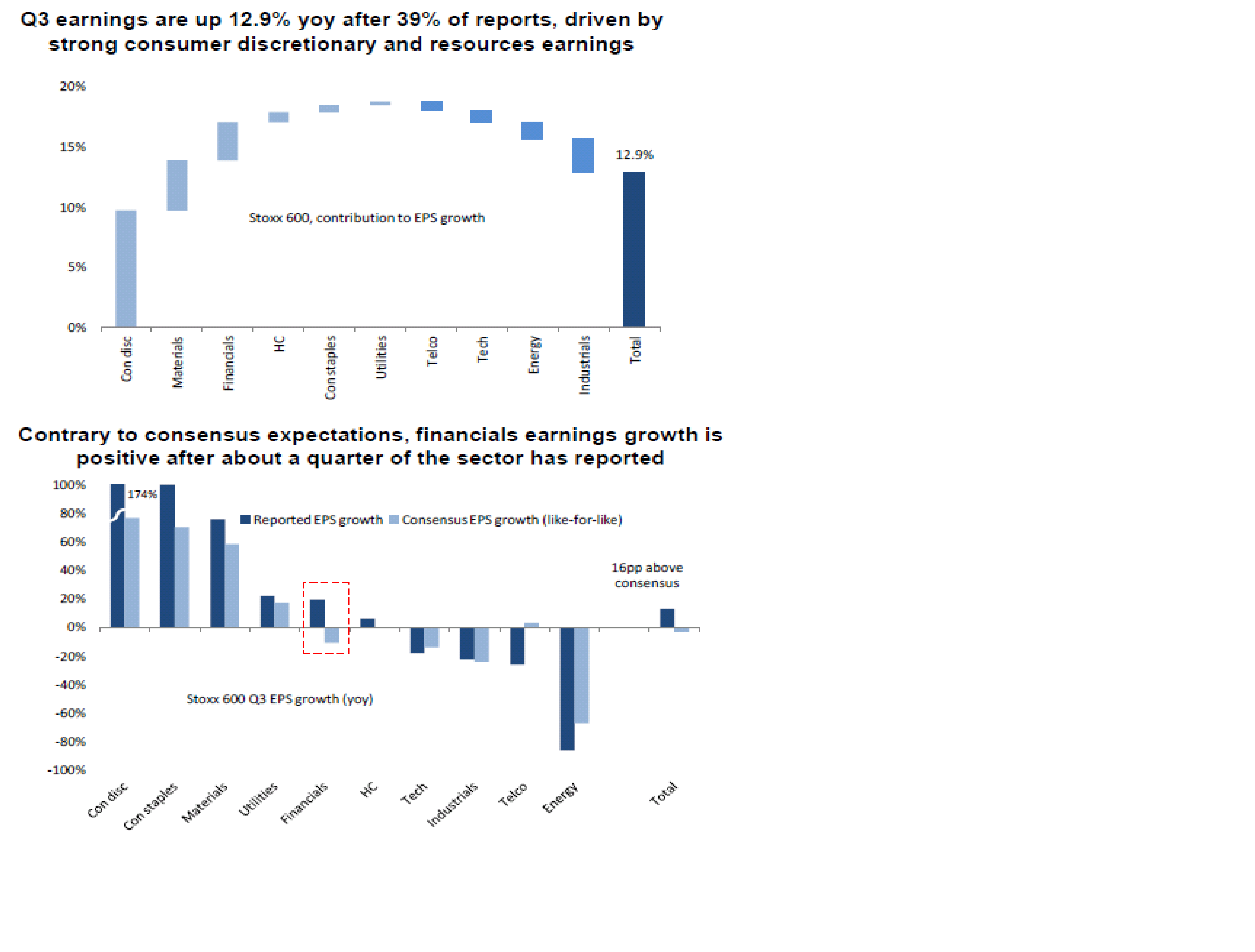 I USA har 70% av S&P bolagen lämnat sina Q3or. 66% slår vinstförväntningarna. Det är bra. Det är främst Finans och Tech som varit bra!