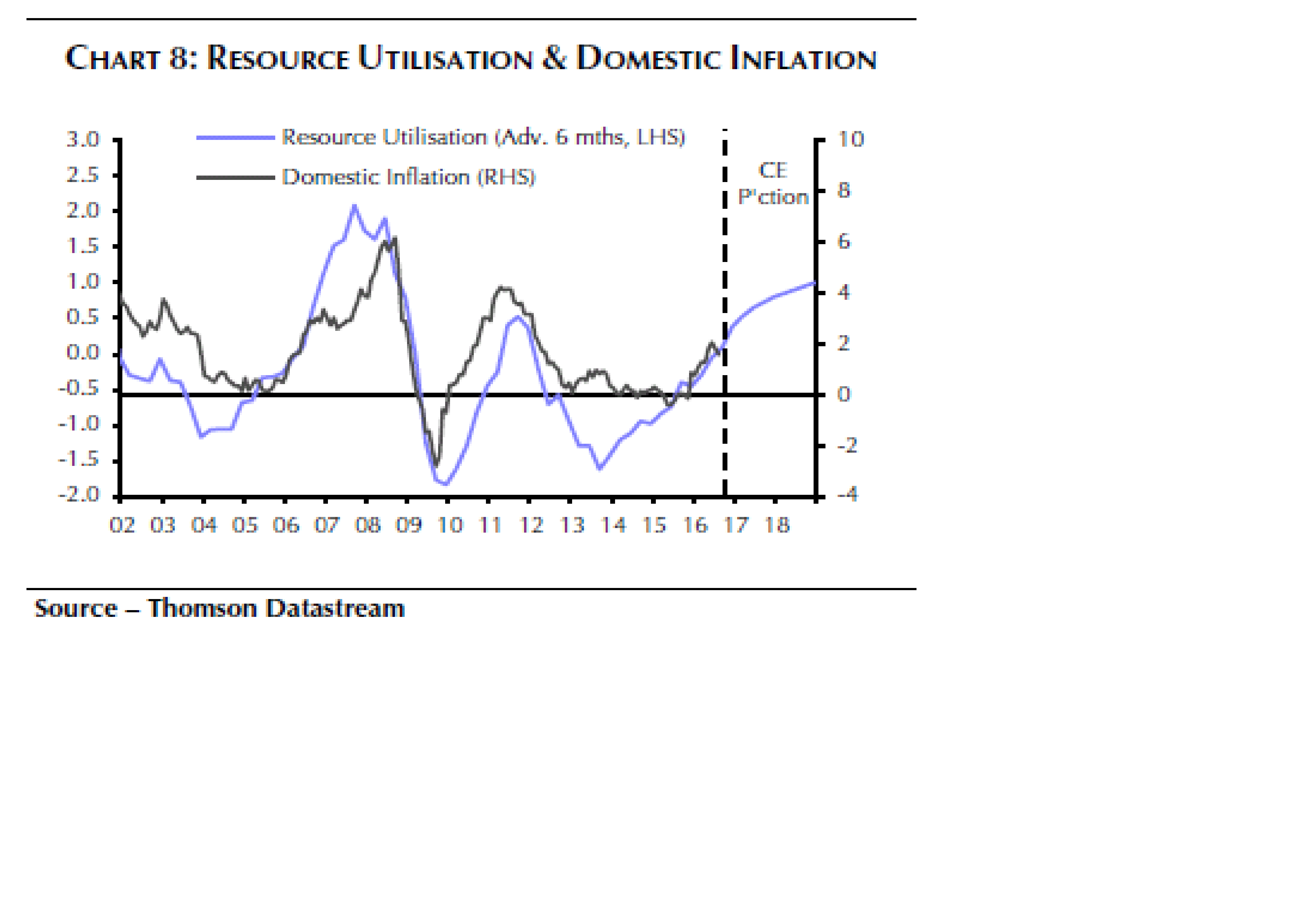 Som sagt, givet resursutnyttjande så tar inflationen fart nästa år…