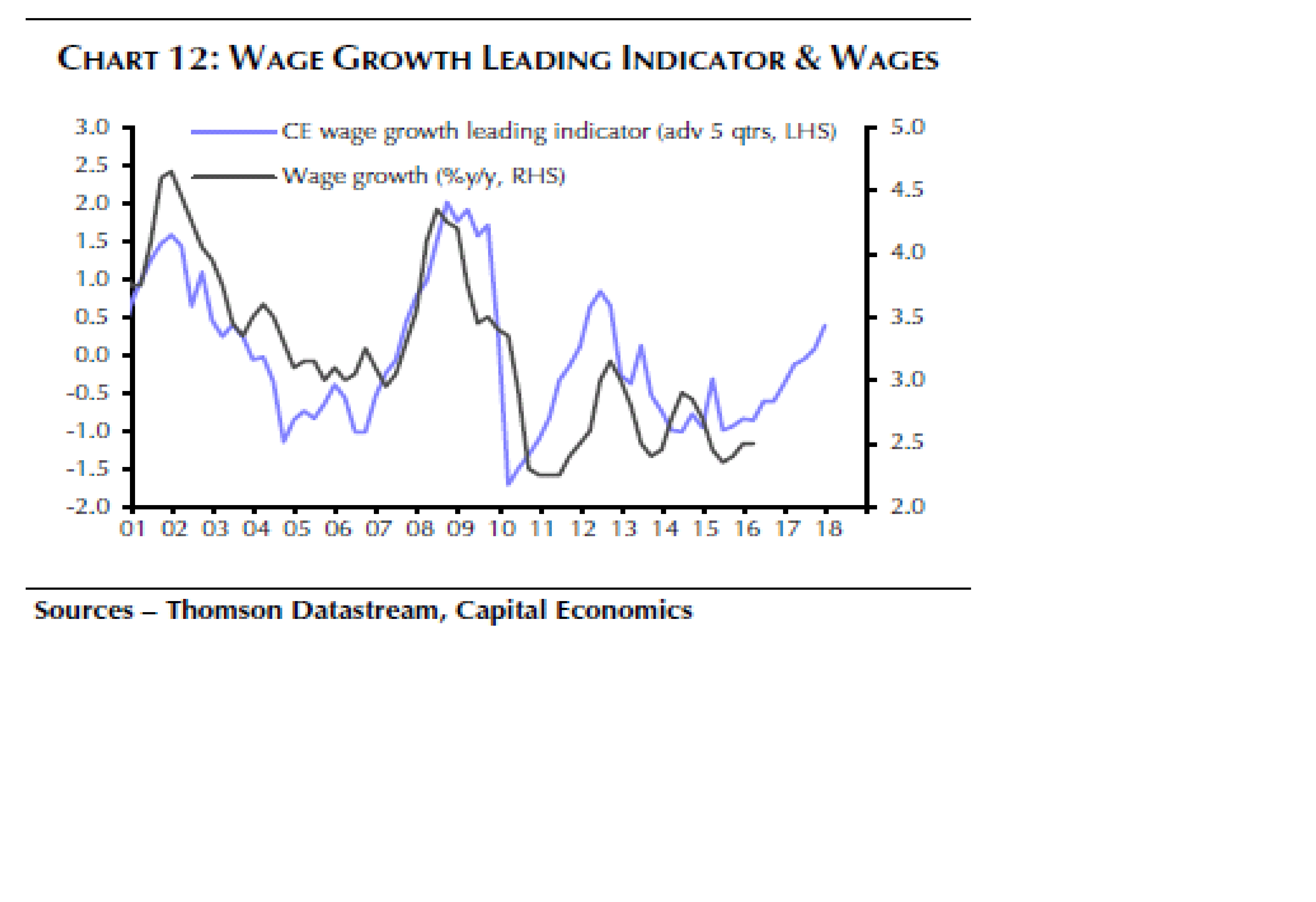 Capital Economics har såklart en ledande indikator som visar att svenska löner kommer ta fart nästa år. Jag säger inte emot!