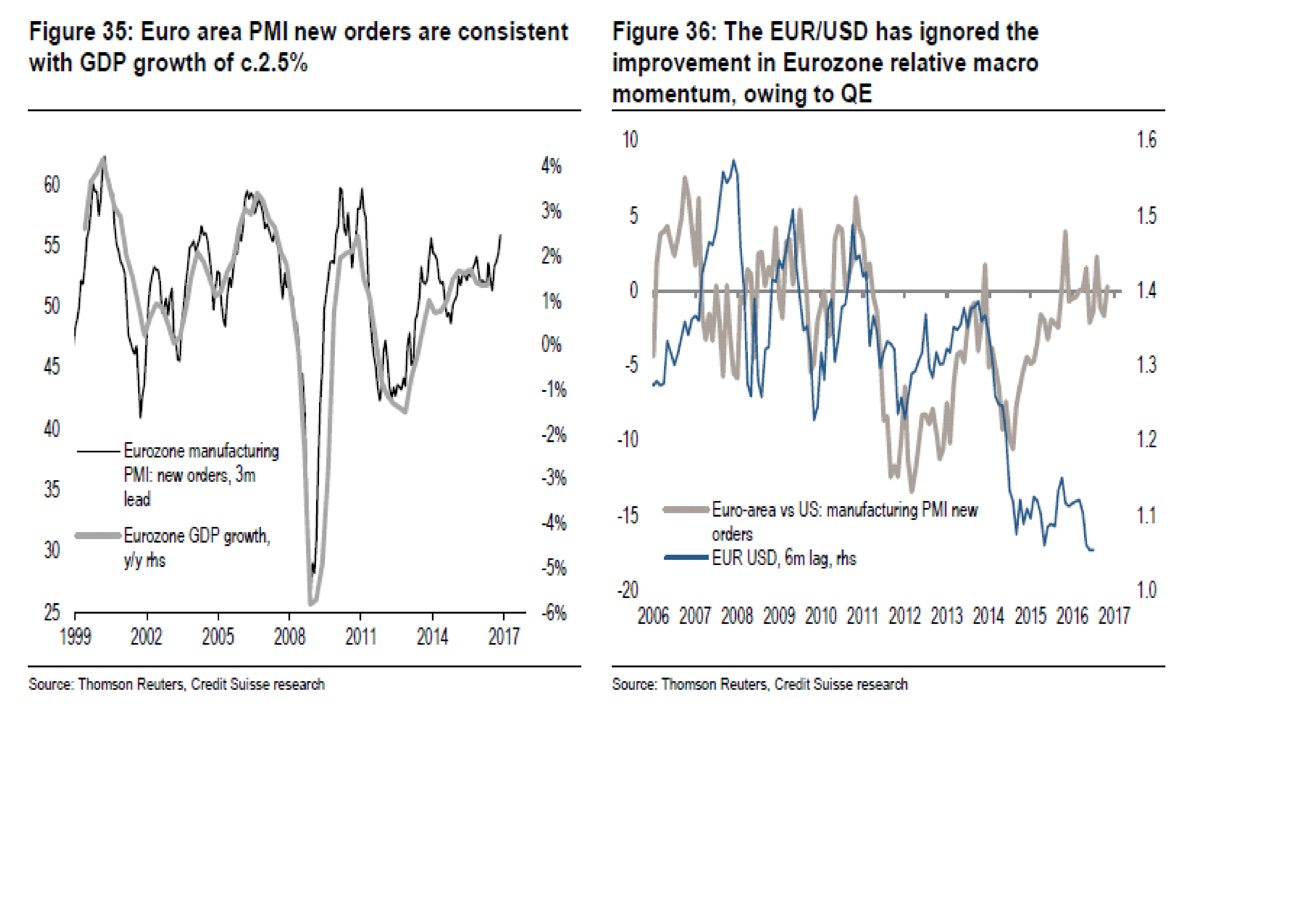 Men det finns dem som är skeptiska till dollar caset. Tittar man på PMIs så indikerar dem att tillväxten ska ta fart i Europa på ett rätt kraftfullt sätt. Undrar vad Drghi tänker då. Euron är också undervärderad enligt REER och PPP baserat. Tittar man på PMIs så borde den handlas väsentligt högre mot dollarn. Den billiga Euron handlar alltså om Draghi. Den dagen har tar bort QE och höjer räntan så kan den dra 30%. Är det därför dollarn inte stärks under par måntro?