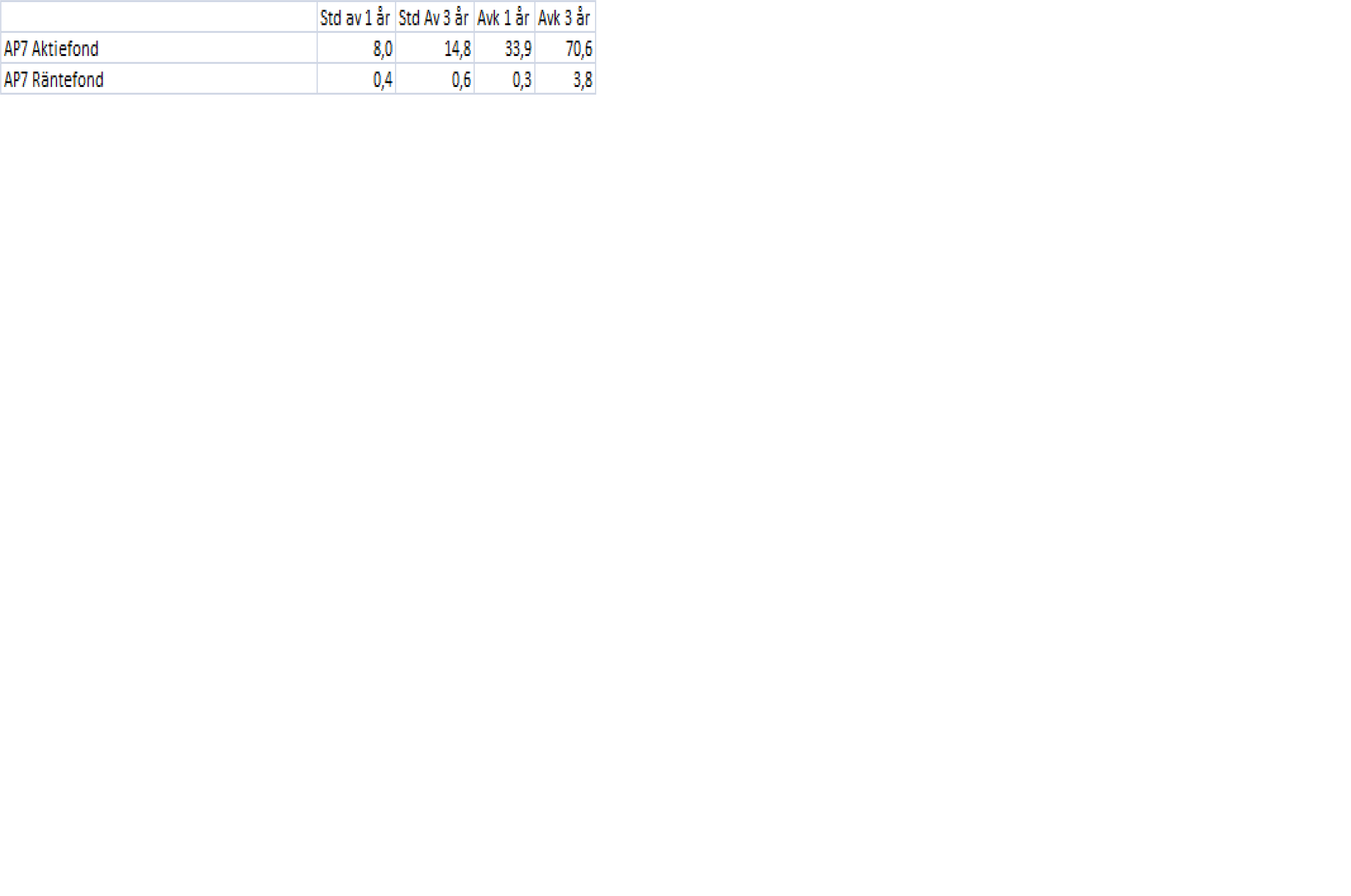 Just senaste året har AP7 Aktie varit anmärkningsvärt stark. 33,9% till 8,0% standarsavvikelse. Nedan är värdena jag använt: