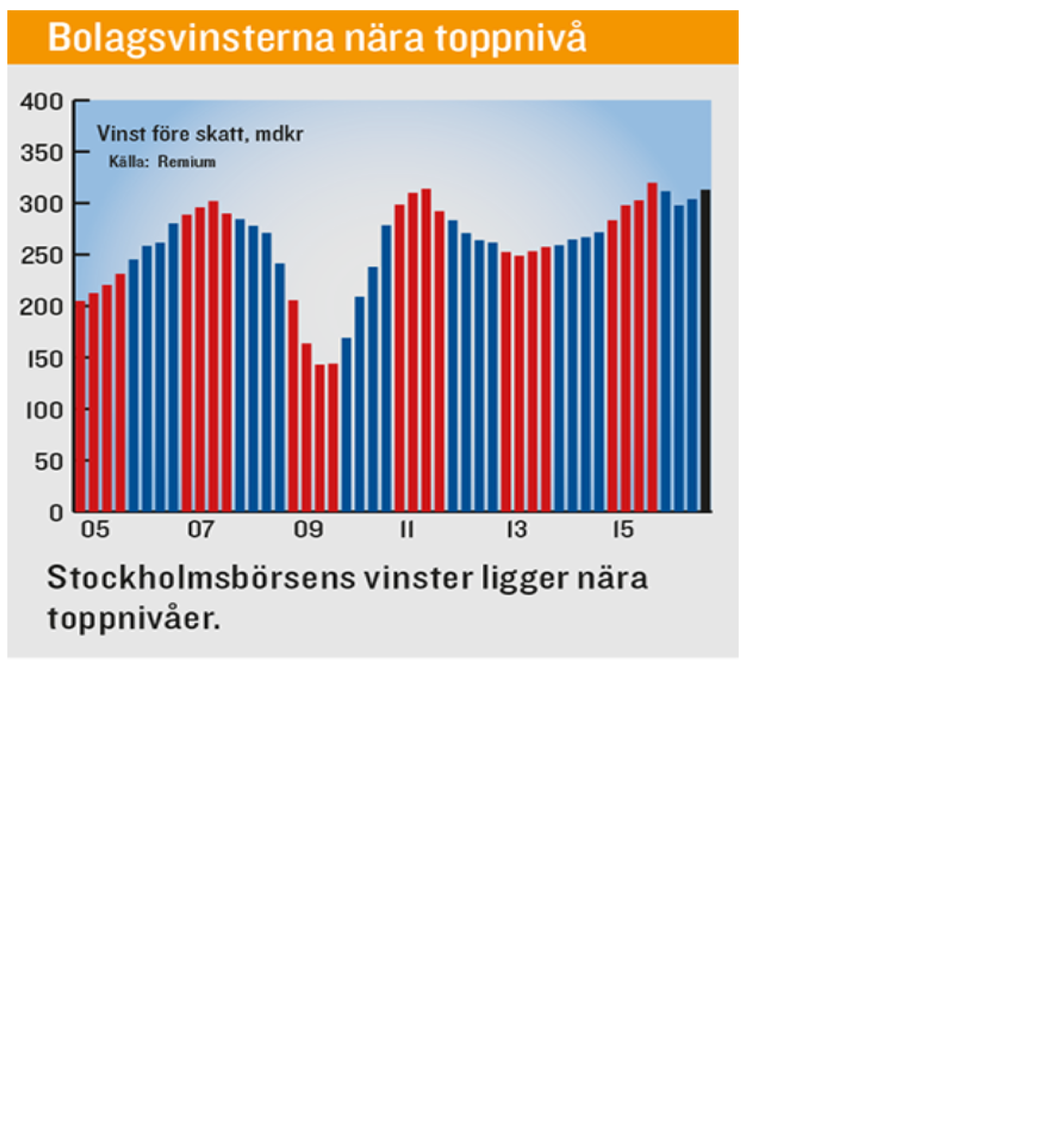 Nedan chart visar vinstutvecklingen för svenska börsen. Vill rikta ett särskilt tack till Peter Malmqvist på Remium som jag lånat den av.