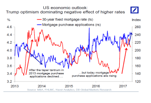 Sist räntorna drog, dvs under våren 2013 när Bernanke pratade om att skala ner QE, så fick det effekter på fastighetsmarknaden. Det har det inte fått den här gången.