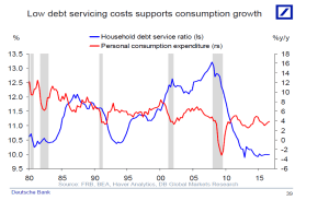 Men man ska inte vara naiv. Hushållens räntebörda är den lägsta någonsin, och varje gång den har tagit fart har det lett till en inbromsning i konsumtion, som senare lett till recession. FED är såklart medvetna om det. Därför ska styrräntan upp till 1,50-1,75… men där är det stop!