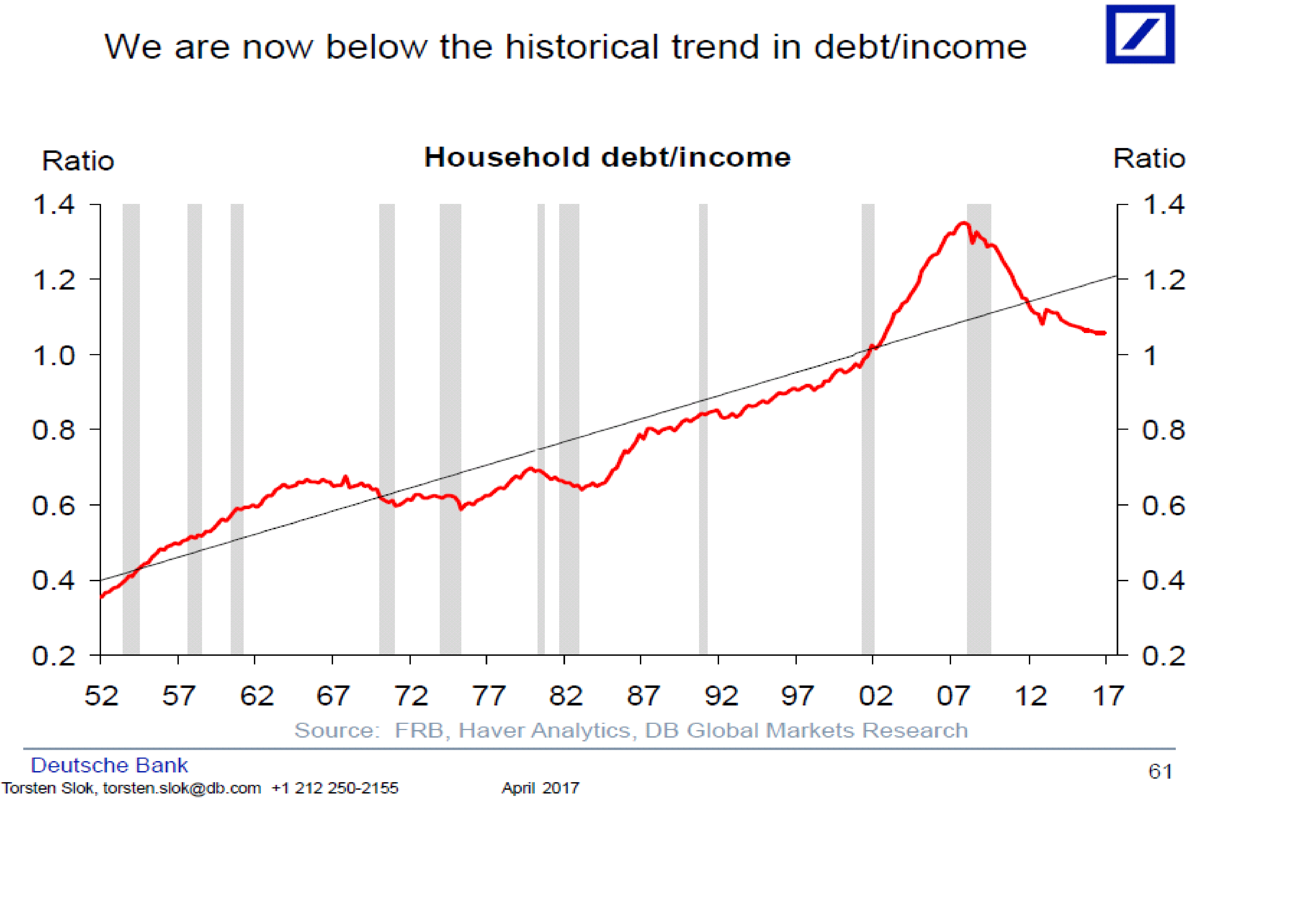 Många tittar på nedan chart och säger att skuldsättningen numera är nere på nivåer som rådde tidigt 90-tal i USA…….