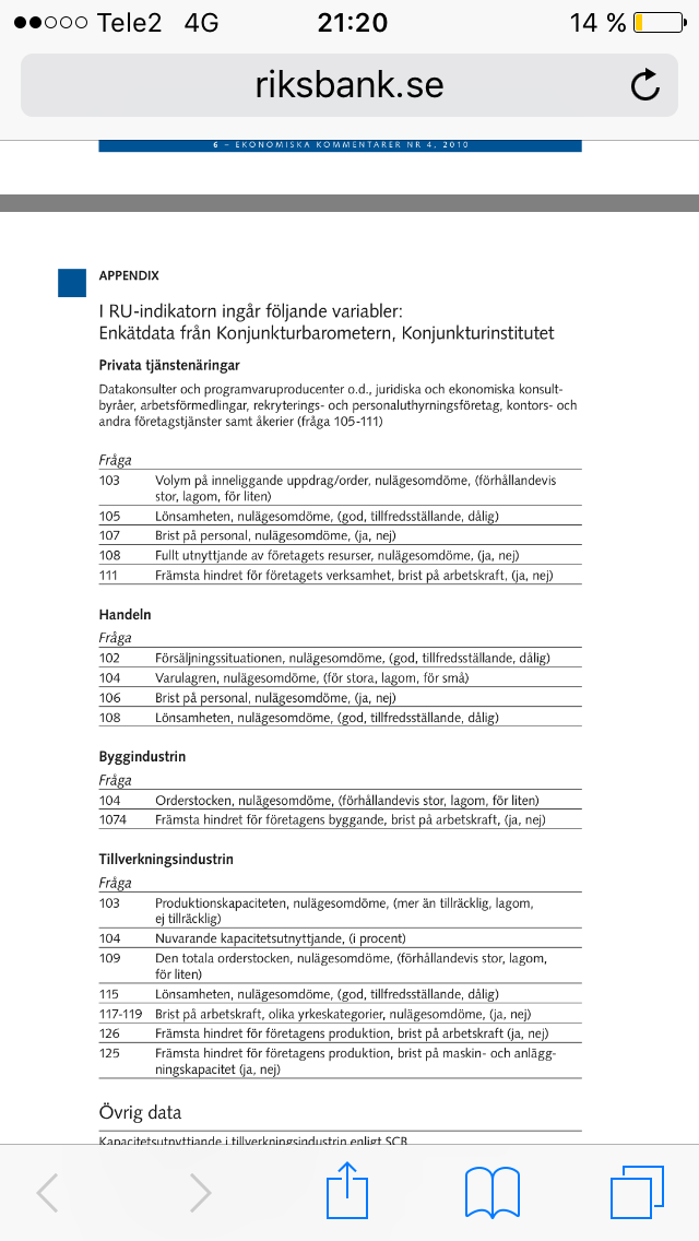 1, Er RU indikator (resursutnyttjande) pekar på att lönerna kan lyfta framöver (trots att lönerna som regleras av avtalsrörelsen landade i nåt annat). Se nedan. Senast RU indikatorn var på dagens nivå var under 2006/2007 så var ju löneinflationen ganska betydande så jag förstår hur ni tänker… MEN