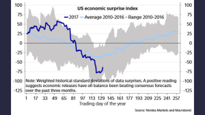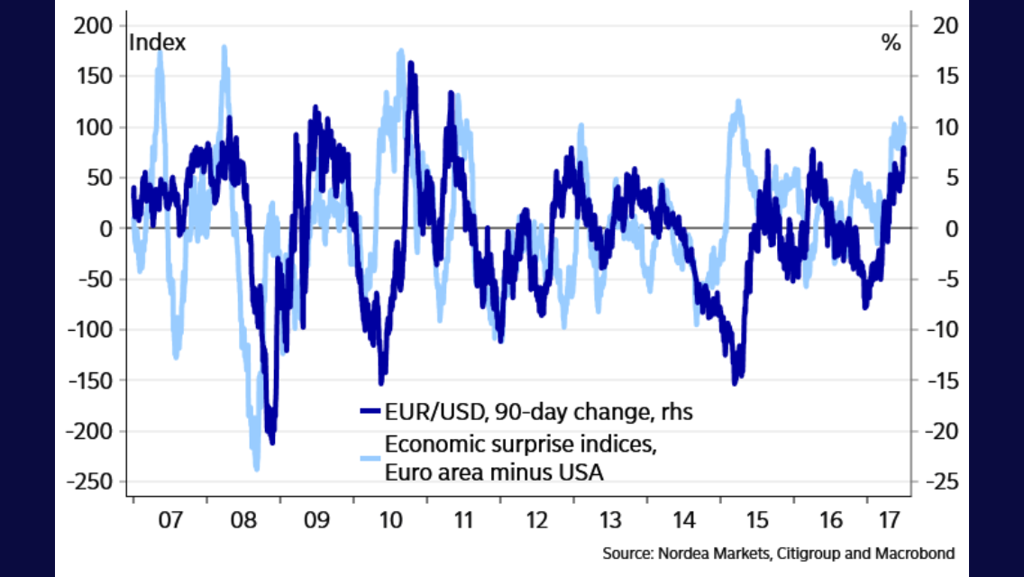 Trots detta är FED fortsatt hökiga. Det blir en räntehöjning till, troligtvis i september. Under Q4 väntas Qexit. Glöm inte att det tar ca ett år för en räntejustering att fullt ut slå igenom i realekonomin. Jag tror därför att Fed gärna vill avvakta och se hur allt utvecklas under 2018. Innan man går vidare och höjer. Qexit kommer förvisso att trappas upp vilket är en åtstramning i sig. Så länge som lönerna inte etablerar sig över 3% i årstakt kan Fed ta det lugnt!