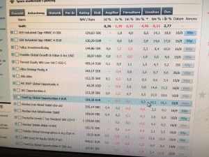 Jag gick ex in i morningstar och valde kategorin Global fonder. En stor och bred kategori med hela 391 fonder. Senaste 3 månaderna är den här gruppen ner ca 5%. Vet ni hur många fonder (som rapporterat NAV igår) har stigit under den här perioden? 5 st. 5 av 391 fonder.