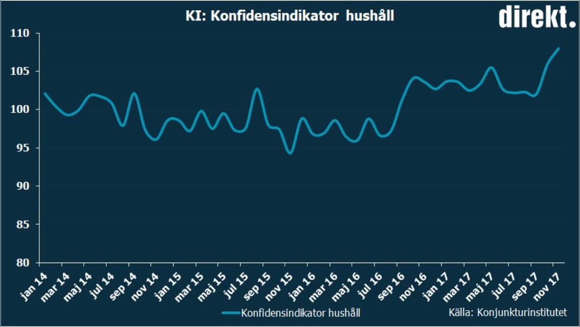 Från Sverige kom KI med data igår över Hushållens konfidensindiaktor. De är gladare än någonsin. Alla ni som tror att fastighetsprissättningen kommer leda utvecklingen av retail sales. Tänk om! Stibor3m som finansierar korta bolån är ner, de 2 och 5 åriga Bostadsobligationerna som finansierar de långa lånen är ner. Hushållens räntekostnader för sina bolån borde snarare sjunka, än öka givet den utvecklingen. Sånt gör folk glada! Börsen går bra! Företagen går rätt bra. Folk har jobb. Sånt gör folk glada. Vänta till 3m Stibor är positiv, mot idag negativ. Då kommer det att börja hända grejor.