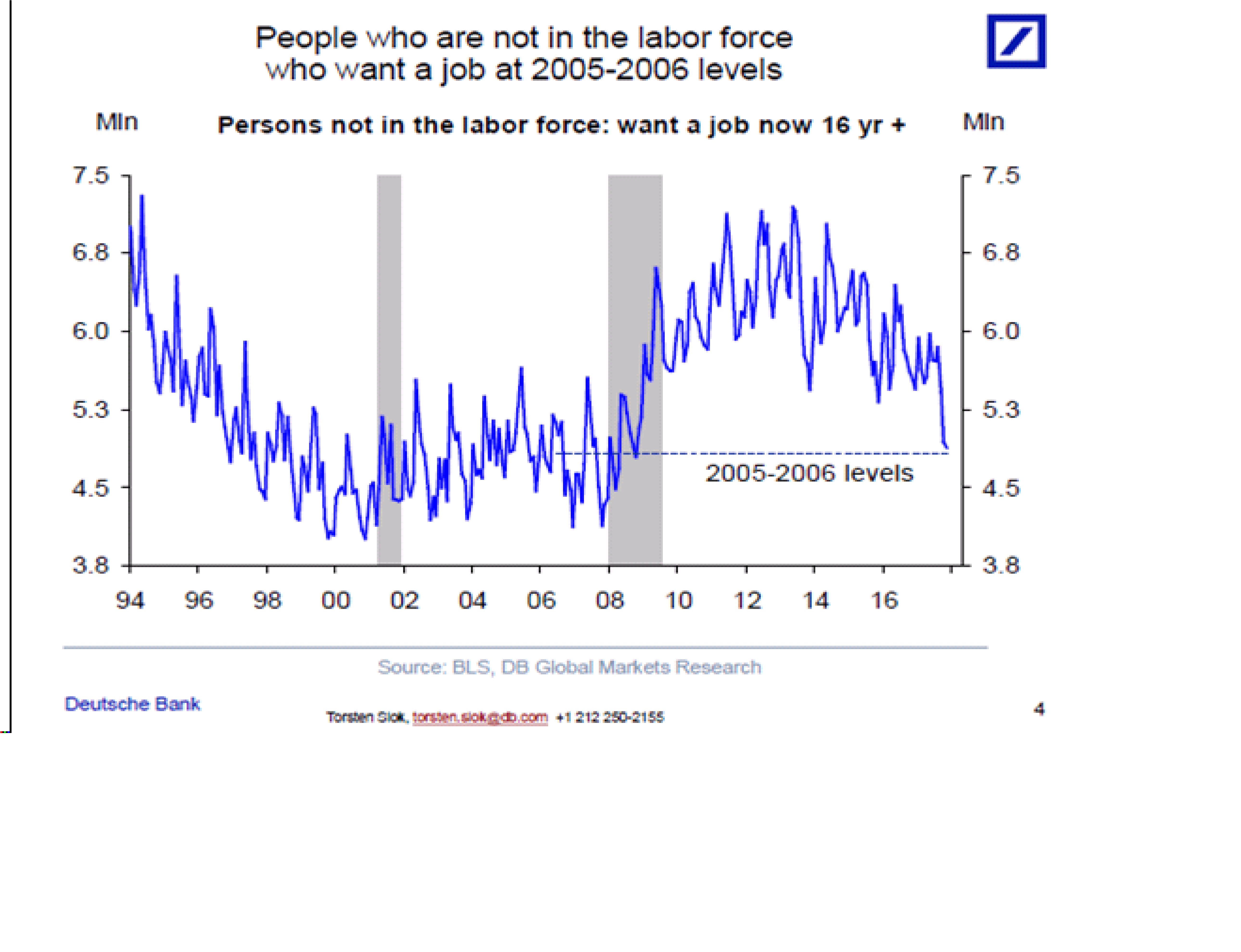Även då har de lyft fram ett antal charts som visar att arbetsmarknaden i USA är tajt och stigande löner är att vänta. De chartsen använder de som stöd även nu. Jag kan hålla med om att chartsen pekar på en tajt arbetsmarknad, men eftersom de inte fungerat hittills så är det långt i från säkert att de fungerar nästa år. Jag är inte ens säker på att en tajt arbetsmarknad framkallar stigande löner av en rad olika skäl. Jag säger inte att jag tror på motsatsen heller. Seeing is believing helt enkelt.