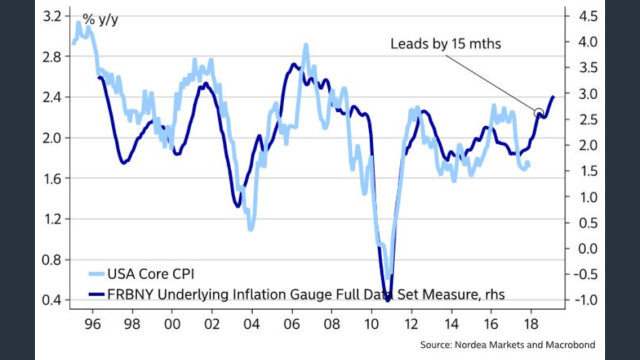 Såg nedan chart av Nordea. Stämmer den så borde det innebära att core pce ska till ca2,5% och lönerna 3,5%+. Det låter mycket, men skulle det hända så kan vi kallt räkna med 3 höjningar nästa år… vi vet att dollarn och indirekta effekter av oljan kommer pressa inflationen. Men knappast så här mycket! Det verkar inte riktigt rimligt!
