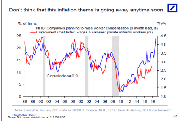 Fick nedan chart av Deutsche. Ja de kanske har rätt. Lönerna är kanske på väg nu…. MEN VÄNTA LITE. Jag fick exakt samma chart för 3 år sedan, och då flaggade man för högre löner. Jag säger INTE att det INTE händer nu…. jag bara säger att jag fått just samma chart under 3 års tid, och lönerna sett till 12m rullande medelvärde, samt dito på Core PCE, har inte alls hängt med. De har haft fel. De kanske får rätt nu….. men varför skulle jag lyssna på dem nu? Har de helt plötsligt fått en edge att spå framtida Core PCE? Wouldnt Think so!!!!