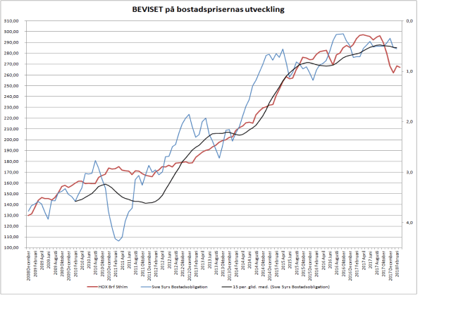 Jag hade nog velat se ett längre tidspann på första grafen med bostadsobligationer/bostadspris. Minns att i USA 2008 så gick marknaden ner 30-40 procent innan obligationerna började röra på sig i det större. Det var ju egentligen först när bankerna var riktigt illa ute som tillgångarna/säkerheterna mot fastigheter började röra på sig.