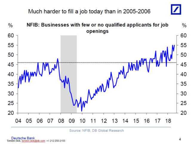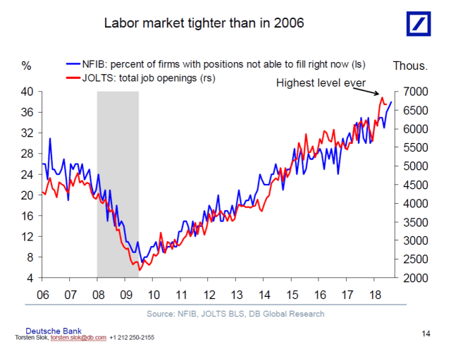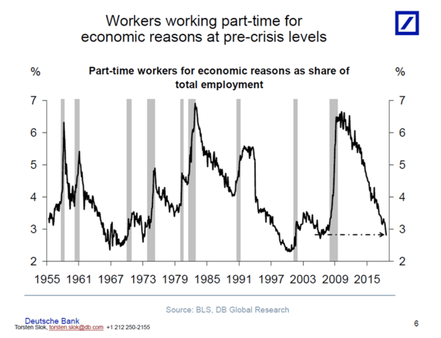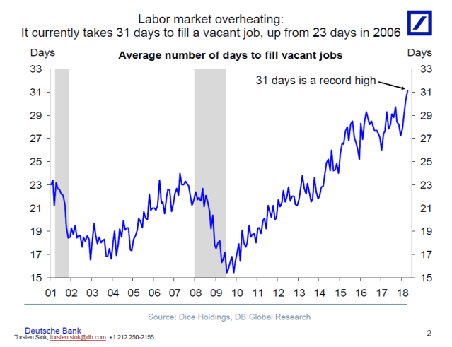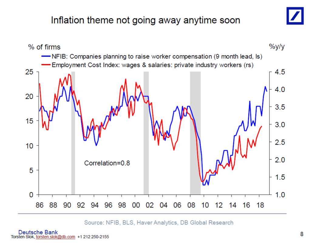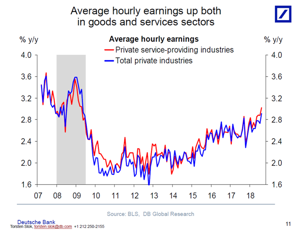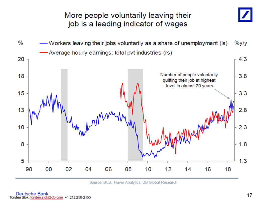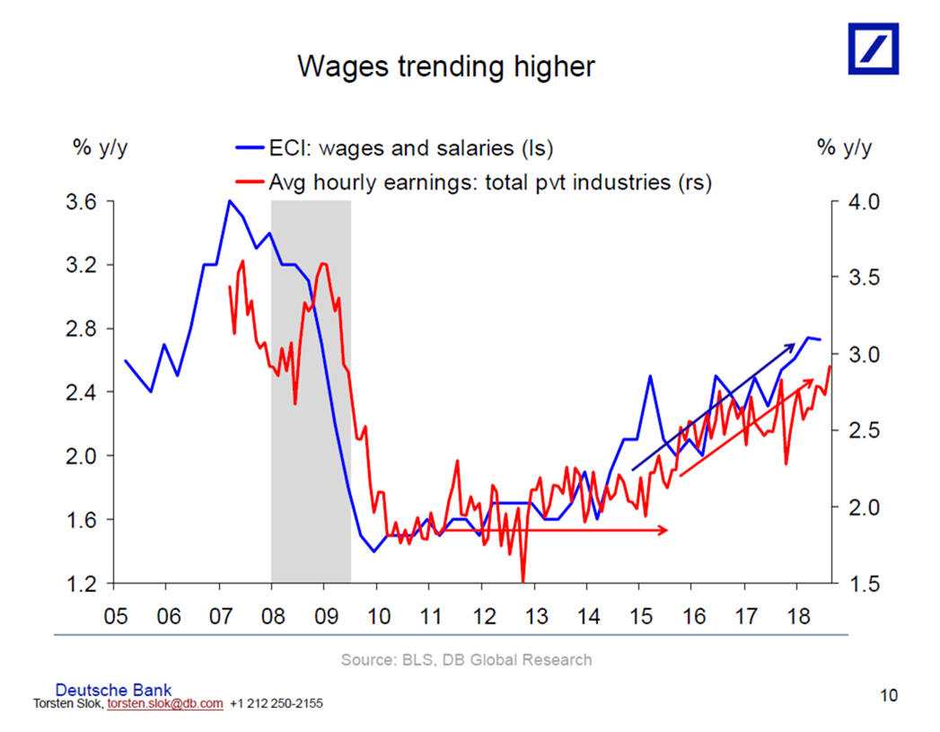 MEN andra, typ Deutsche, hävdar motsatsen. Vilket jag visar på med ett antal charts nedan. Innan ni blir helt tossiga av de här chartsen, så ska ni veta att Deutsche har framhärdat de här chartsen och att löneinflationen ska ta fart i över tre års tid. Så de har haft fel väldigt länge. De sitter inte på svaren heller, även om de har fina charts.