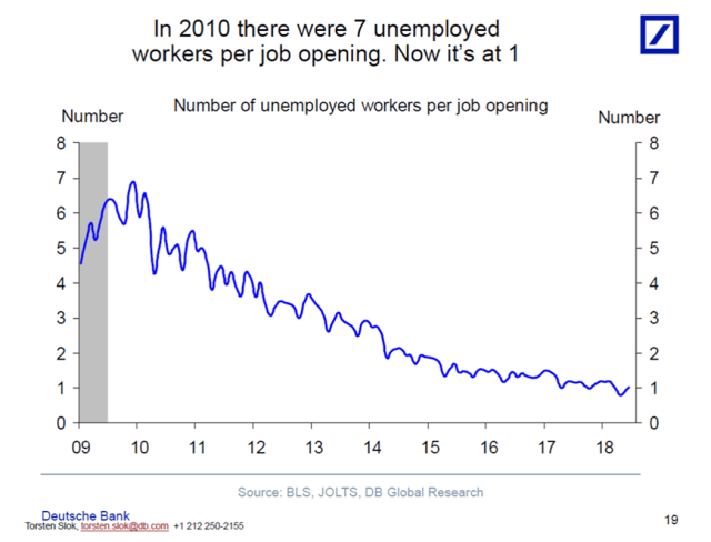 Så frågan är om de kan fortsätta att stiga? Ja det beror på 1, tillväxt och 2, hur tajt arbetsmarknaden är. Tillväxten är vad den är…. ca 2-3% i USA. Men tajtheten då?