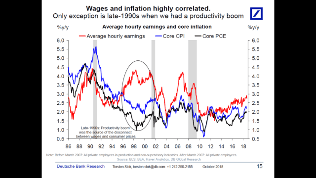 Nedan chart från DB visar med all tydlighet hur viktiga lönerna är för inflationen. Jag har sagt det innan. Lönerna måste till 3,5%+ för att det ska vara rationellt för Fed att höja till 3%+.