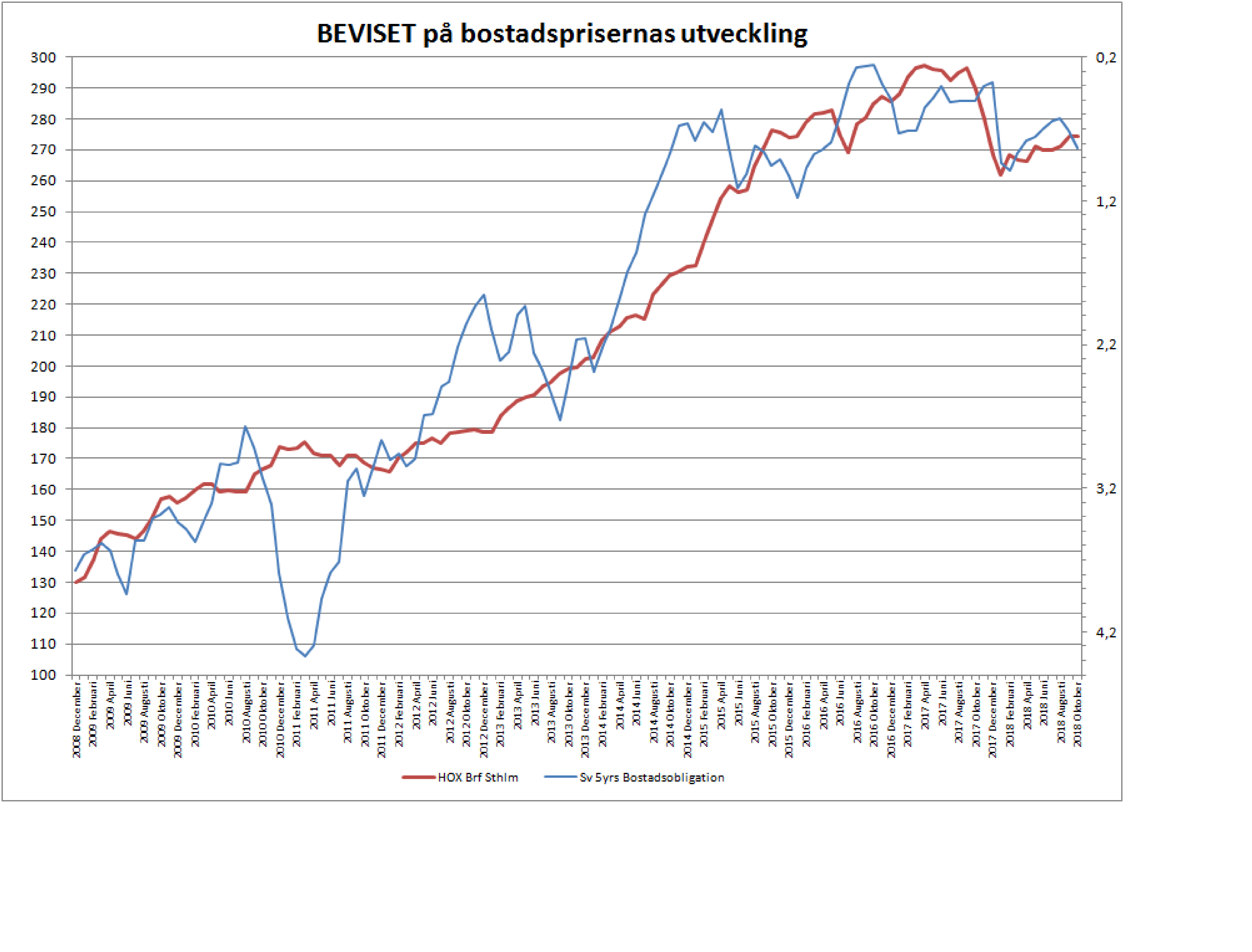 Idag ligger styrräntan på -0,5%. Då bör en 2-årig statsobligation ligga på 0% och en 5-årig på +0,5%. En 5-årig bostadsobligation bör ligga på ca 1,0%. Den ligger idag på 0,84%. Jag tror att den kommer röra sig upp mot 1%. Om Ingves höjer 2ggr så kommer den fortsätta att röra sig mot 1,5%. Kanske nästa sommar.