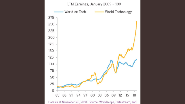 Det är också anmärknignsvärt att vinsterna idag inte är högre, ex Tech, än de var 2007. Låg strukturell tillväxt i världen är förklaringen.