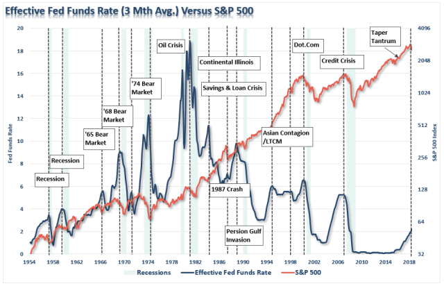 Nedan chart är intressant, för det visar med all tydlighet hur FED med sina räntehöjningar effektivt har dödat konjunkturer historiskt sett.
