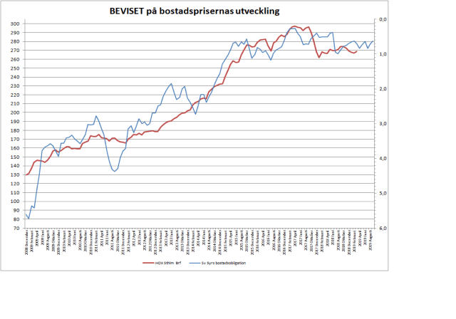 Det ger ett spann på 0,25 till 2% för den 5-åriga bostadsoblisen mot idag 0,62%. Risken är såklart högre att den stiger än den faller….. så visst finns det en klar risk mot de svenska bostadspriserna ur det avseendet. Dagen bostadspriser dikar en ränta på cirka 0,8-0,9%.