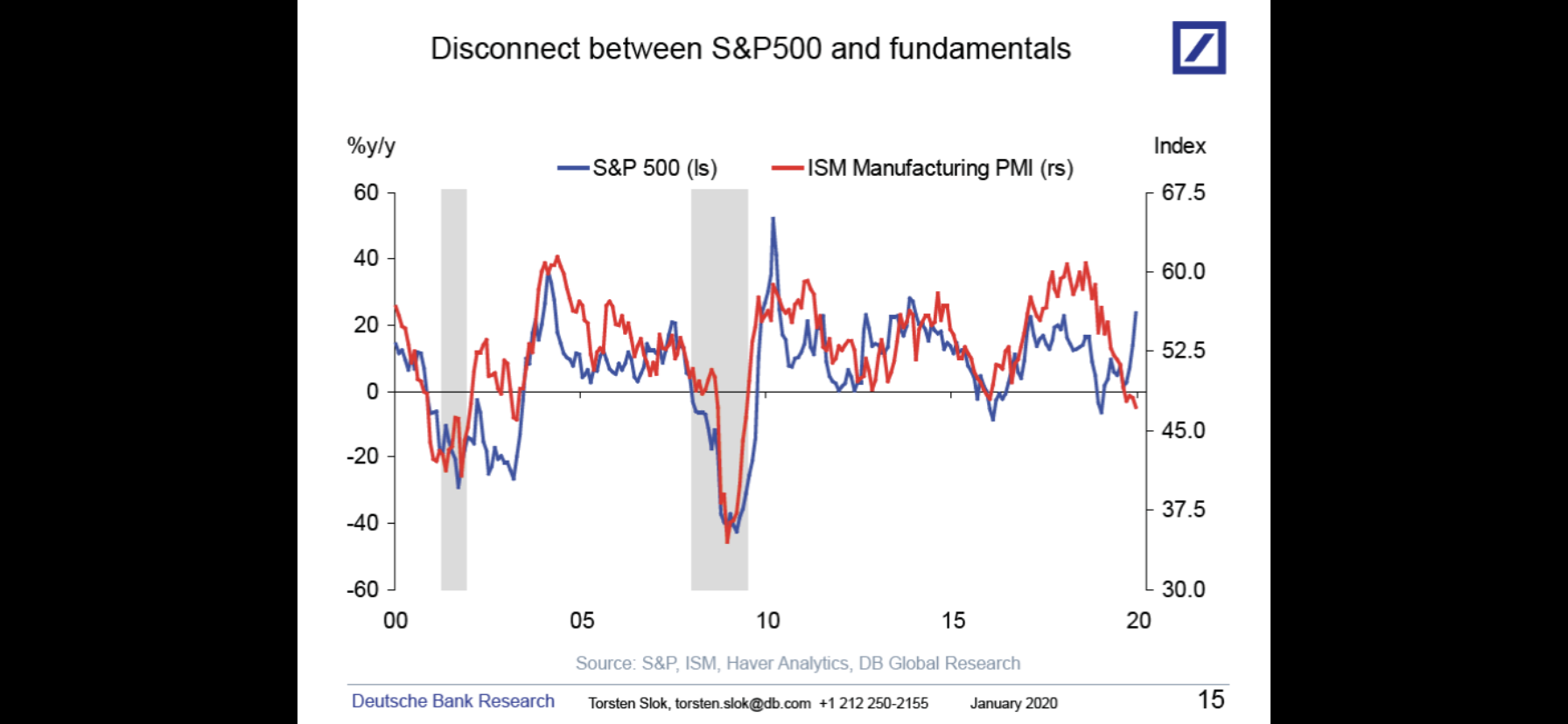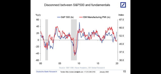En inte allt för järv gissning är att korrektionen i Q1 kommer handla om nedan chart. Dvs de kommer konvergera genom att Ism stiger och börsen sjunker…