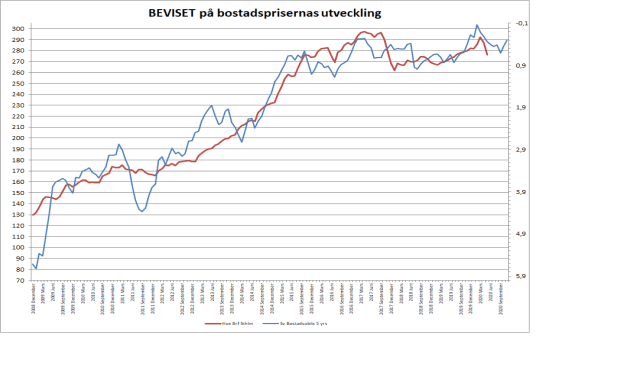 Min analys är följande. När den föll senast från 2006 till 2008 och därmed tidigt flaggade för den fastighetskris som sedan låg till grund för Sub prime Lehman, Great Recession och Finans och Fastighetskrisen så föll den DUBBELT så mycket. Nu bottnade vi på nivåer som vi såg under 2007. Att den vände redan är positivt.