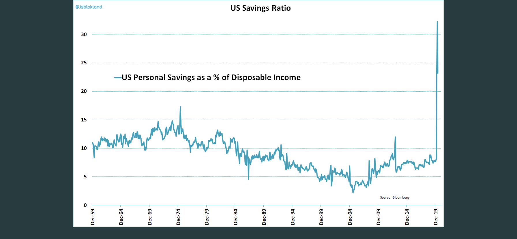Detta är helt enligt min bok, och anledningen till varför inköpscheferna börjar bli så glada. Dvs tidigare tvingade restriktionerna folk att hålla sig hemma. När man börjar lätta upp på detta ger man sig ut på stan och ökar sin konsumtion. Sparkvoten faller. Inköpscheferna ser att lagernivåerna börjar sjunka och lägger beställningar på nya varor. De blir positiva. För att detta ska fortsätta så måste hushållen självklart inte tvingas sitta hemma till följd av nya restriktioner, men även ha en positiv tro om frmatiden, vilket handlar om att de 20 miljoner permitterade amerikaner börjar komma tillbaks till sina jobb efter sommaren. Detta kräver också att det inte införs nya restriktioner. Sen behöver inte ALLA komma tillbaks till arbete, men det stora flertalet. Säg 80% för att det inte ska leda till problem. Sen spelar det inte så stor roll, som vissa tycks tro, vad man konsumerar. Dvs även om vi inte beställer flygresor framöver, så duger det gott att vi köper en ny robotgräsklippare.
