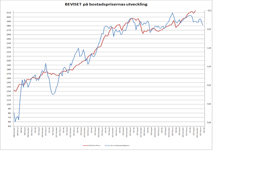 NAHB index kom igår in på 80 mot väntat 76 och fg 76. Stark, vad är detta!!! Ta det lugnt. Det är bara brus. Den håller på att trenda ner sedan november 2020 när den låg på 90, då 10-åringen började lyfta från 0,5% och drog den 30-åriga bostadsoblisen med sig. Nu ligger 10 åringen på 1,58% och är på väg mot 2%+ med allt vad det för med sig. Bland annat en högre 30-åring MBS (mortgage backed Security) vilket implicit kommer innebära lägre lånelöften, och mindre pigg prissättning på bostadsmarknaden, vilket NAHB är en leading factor. Såååå, stark siffra igår, men make no mistakes. Så länge som FED stakat ut riktningen så kommer den trenda nedåt, och med den priserna. DOCK ingen fara på taket. Priserna kommer från en rekordhög nivå… så även om priserna är 10% lägre om 1,5 år så kommer folk på gatan fortfarande vara happy.
