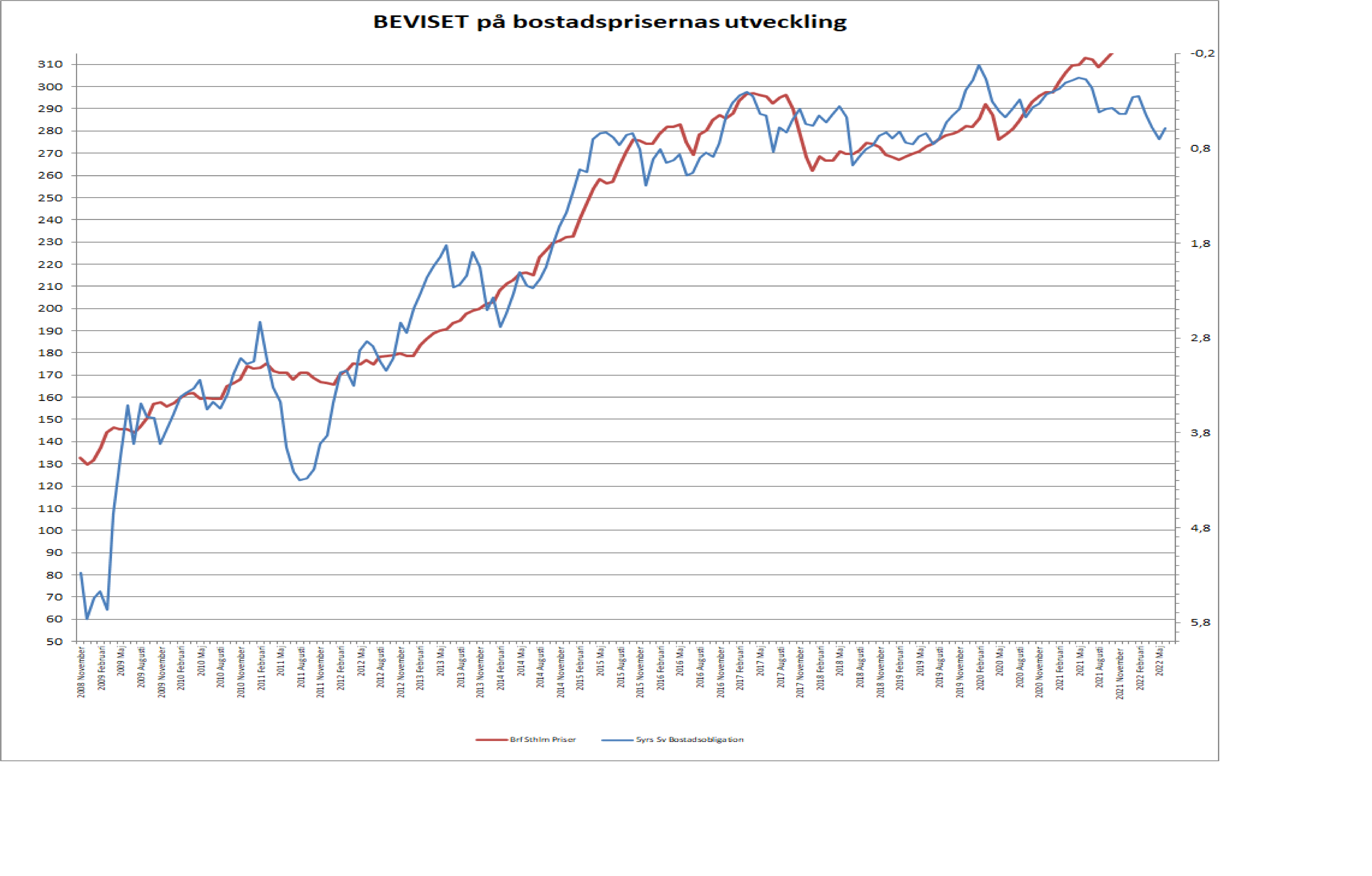 Som ni ser ligger räntan för vår svenska 5yrs bostadsoblis på ungefär samma snittnivå sedan 2015, alltså senaste 7 åren. Medan bostadspriserna sannerligen inte gör det. Do the math!