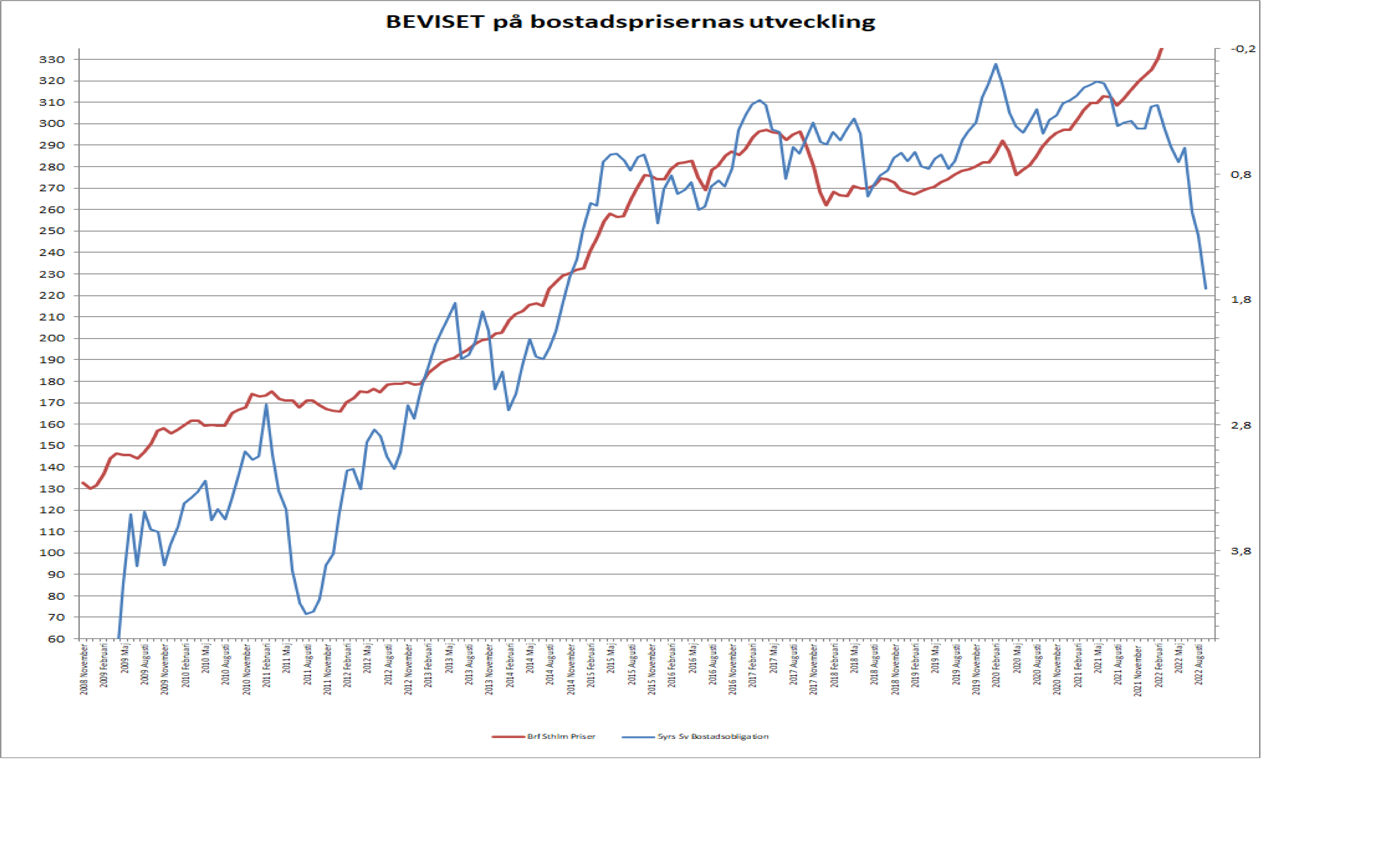 Grafen över obligationen ser minst sagt läskig ut. Vad tror du sannolikheten är för att bostadspriserna står 10-15 % lägre om 6 månader? Kan riksbanken behöva kliva in och stödköpa obligationen då dubblade räntekostnader kommer strypa konsumtionen helt, speciellt med tanke på alla annan inflation vi har? Tycker det mesta känns 15 % dyrare snarare än 4 % som är den offentliga siffran.