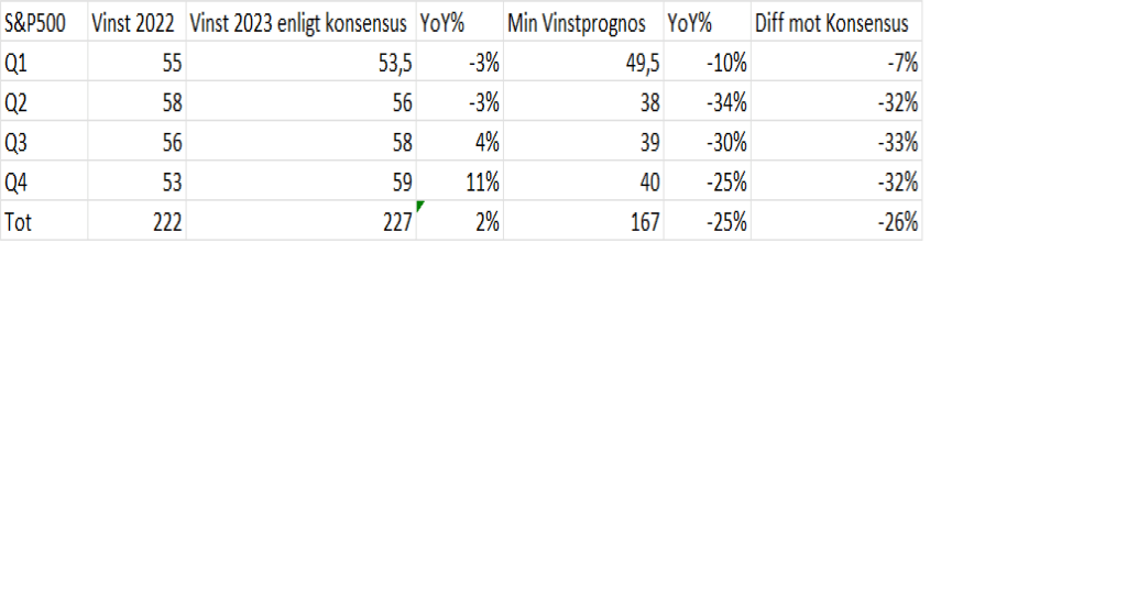 Räntemarknaden prisar nu in 24% sannolikhet för en FED höjning i maj, dvs ingen höjning, och att sänkningar påbörjas redan i sommar. Det handlar inte bara om fallande inflation här utan en klar koppling till att lågkonjunkturen verkligen sköljer över oss här och nu under våren och sen fortsätter året ut. Detta i sin tur handlar till viss del om bankkrisen, men även det faktum att ränteläget för 6 månader sedan nu börjar bita real ekonomiskt. En effekt som sedan håller i sig.